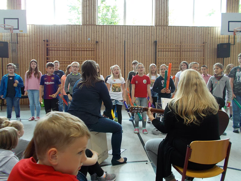 Aktionstag Musik Der letzte Schultag vor den Pfingstferien gehört an der Grafen von Schaunberg Schule immer der Musik. Nach der Pause traf man sich in der Turnhalle, um sich am Aktionstag Musik zu beteiligen. Viele Eltern und Großeltern waren der Einladung gefolgt und ließen sich zwei Stunden lang mit einem sehr abwechslungsreichen Programm unterhalten. Zu Beginn begrüßten alle Kinder mit der Hymne des Zulustammes „Siyahamba“ die Gäste, die gleich aufgefordert wurden, mitzutanzen. Die Vorschulkinder der benachbarten Kita St. Michael sangen lautstark ein fröhliches Lied mit Bewegungsübungen. Danach starteten die Beiträge der Kinder. Dann folgten Marie Starzer und Sarah Danzer aus der 1. Klasse auf der Gitarre mit den Liedern „Der Wurm“ und „Bruder Jakob“. Die Flötenkinder unter der Leitung von Sonja Schachtner gaben das Stück „Easy Beat“ zum Besten. Aus der 2. Klasse kamen die Solobeiträge von Jonas Hütter auf dem Akkordeon und Lea Deragisch auf der Flöte. Sie spielte passend das Lied „In die Schule gehen“. Mit „Alle Kinder lernen lesen“ machte die 1. Klasse den Vorschulkindern auf sehr lustige Weise Mut zu ihrem Neustart im September. Der Auftritt der „Boogie-Schmiede“ unter der Leitung von Christoph Pecher war eine Premiere beim Musiktag. Die Tänzer begeisterten die Zuschauer mit einer Vorführung. Mit dem Lied der 2. Klasse „Leit, Leit Leitl müaßts lustig sei“ und dem Beitrag „Hulapalu“ auf der Gitarre von Sebastian Westner und Eva Eiblmaier aus der 3. Klasse wurde es volkstümlich. Diese Beiträge wurden mit viel Applaus belohnt. Ein Novum war ebenso die Beteiligung der Ganztagesschule. Diese Kinder hatten fleißig geübt und erfreuten die Besucher mit dem Lied „Die Affen rasen durch den Wald“ und „Auf uns“. Einen Höhepunkt stellt auch immer der Auftritt des Trachtenvereins dar, der repräsentiert wurde von Brigitte Greßlinger-Stadler, Josef Greßlinger, Wolfgang Tappert und Samuel Mollner. Diese zeigten den Schülerinnen und Schülern einfache Tänze, die spontan mitgetanzt werden konnten. So verwandelte sich die Turnhalle rasch in eine große Tanzfläche. Der Liedbeitrag der 3. Klasse hieß „Es war einmal ein Stachelschwein“. „Ich kenne einen Cowboy“ spielte Emily Deser aus der 4. Klasse auf ihrer Gitarre vor. Ein Mädchenchor der 4. Klasse mit Mona Svehla, Sofija Schur, Leonie Dachsberger, Leonie Striegl und Eva-Katharina Ebertseder präsentierten den Song „Spirit wild und frei“. Den Abschluss bildete der „Gesundheits-Rock“ der 4. Klasse. Alle Kinder freuten sich, einmal eine Gelegenheit zu bekommen, vor Publikum auftreten zu können und die Besucher honorierten ihren Mut und ihren Fleiß mit großem Applaus.