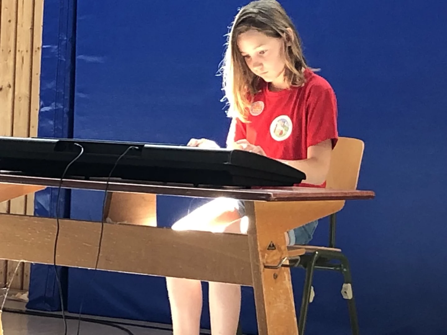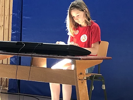 Mit dem Lied „Träume“ folgte die vierte Klasse. Den Beginn der Solobeiträge aus der 4. Klasse machte Jonas Eiblmeier, der mit dem „Hiatamadl“ auf der Steirischen Harmonika und Gesangsbegleitung für Stimmung sorgte. Hannah Rohrer spielte auf dem Klavier das „Musterlied“ und Lena Vetter sang zu ihrer Gitarrenbegleitung „Skandal im Sperrbezirk“. Mit viel Applaus wurden die jungen Musiker belohnt.