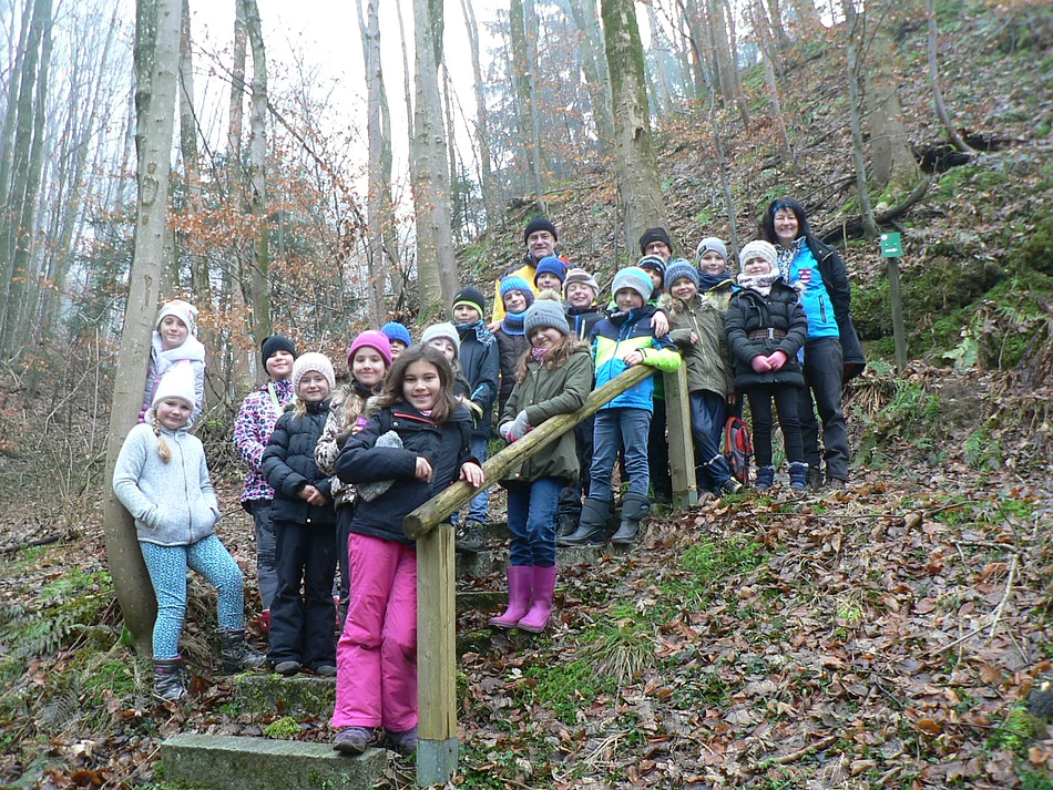 Am 26. Januar erkundete die dritte Klasse der Grafen von Schaunberg Grundschule zusammen mit den Julbacher Burgfreunden die Überreste der Julbacher Burg. Die Entdeckungstour begann im Rathaus. Dort wurden unter großem Staunen Fundstücke aus dem Zeitalter des Mittelalters betrachtet und von Wolf-Dieter Hergeth erklärt. Anschließend ging es hinauf auf den Schloßberg. Mit Leidenschaft erklärten die Mitglieder der Burgfreunde den Kindern wo sich die ehemaligen Mauern der Burg befanden, aus welchen Gebäudeteilen die Burg bestand und wie das Leben auf ihr gewesen sein musste. Nach der Besichtigung des alten Brunnens und dem Eintrag in das Gästebuch wurde es schließlich abenteuerlich. Die Schülerinnen und Schüler durften ausgerüstet mit ihren Taschenlampen die Erdställe besichtigen. Ganz Mutige wagten sich sogar weit in die dunklen engen Gänge hinein. Wieder zurück im Schulhaus zeigte und erklärte Gabi Sperl den Kindern, wie sich die Menschen früher gekleidet haben. Mit Begeisterung schlüpften die Jungen und Mädchen in Beinkleider und Gugel. Bereichert von den vielen neuen Eindrücken bedankte sich die Klasse für das große Engagement der Burgfreunde mit einem tosenden Applaus.
