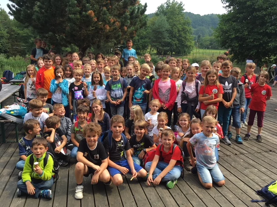 In der letzten Schulwoche machten sich alle vier Klassen auf nach Ortenburg. Dort besuchten sie das Theater Maskara am Weiher. Der Schauspieler Frieder Kahlert schlüpfte in dem Stück "Der Trommler" in viele verschiedene Rollen und begeisterte sein junges Publikum. Mit einem wandelbarem Bühnenbild, vielen musikalischen Einlagen, Masken und technischen Überraschungen fesselte der Schauspieler die Kinder. Es gab tosenden Applaus. Danach wurde noch Brotzeit am Weiterhaus gemacht und die Heimreise angetreten.