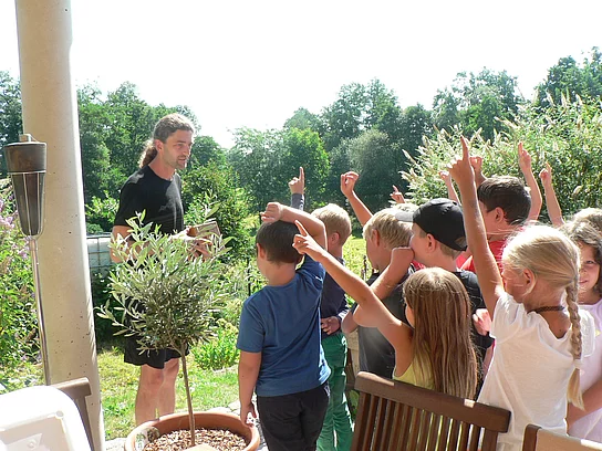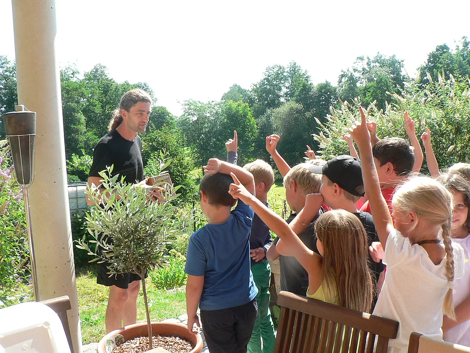 Das Nutztier Biene ganz nah Eine Stunde lang erzählte der Bienenbesitzer Andreas Niemöckl den Kindern der ersten Klasse etwas über sein Hobby. Zunächst bestaunten die Erstklässler im Klassenzimmer verschiedene Rahmen eines Bienenkastens. Wobei der erste noch leer war und im letzten sich verschlossene Honigwaben befanden. „Dürfen wir den jetzt schleudern?“, so fragten die Kinder den Honigexperten. Dieser verneinte und erklärte, dass es sich bei diesem Rahmen um seine Reserve handelt, falls ein Volk im Frühjahr zu wenig Honig im Stock hat. Begleitet von zahlreichen Zwischenfragen beschrieb Herr Niemöckl die einzelnen Entwicklungsstadien einer Biene. Die Kinder staunten nicht schlecht darüber, dass eine Sommerbiene nur 6 Wochen lebt, weil das Nektarsammeln sehr anstrengend ist. Gewappnet mit Verhaltensregeln gegenüber den nützlichen Insekten, machte sich die Klasse im Anschluss auf den Weg zum Garten des Bienenbesitzers. Hier wurde ein kleiner Bienenkasten geöffnet und die Kinder konnten alle Entwicklungsstadien einer Biene nun live besichtigen. Wir bedanken uns ganz herzlich bei unserem Schulnachbarn für die informative Unterrichtsstunde! Karola Paster, Lin