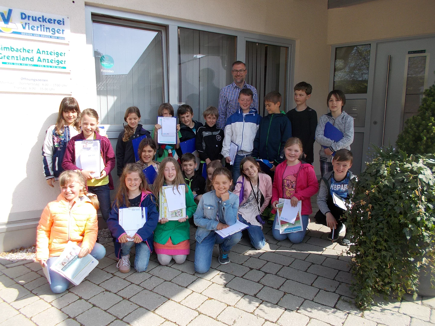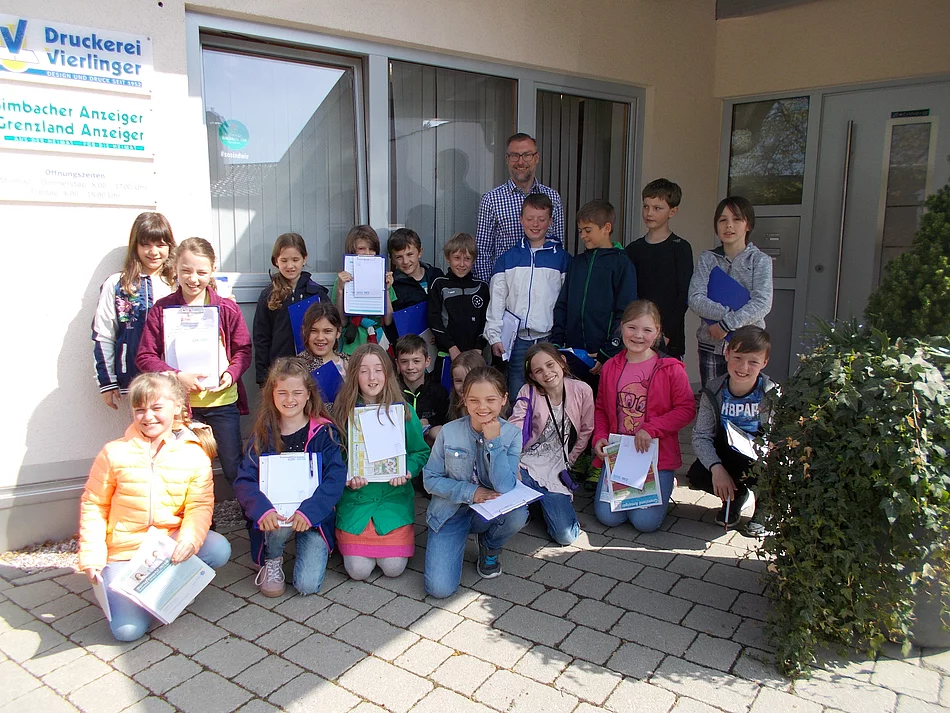 Zu den Ereignissen rund um den Welttag des Buches durfte die 3. Klasse die Druckerei Vierlinger in Simbach besuchen. Herr Günther Plaza erklärte die einzelnen Arbeitsschritte und die Arbeitsweise der Maschinen sehr anschaulich. Die Kinder zeigten sich sehr interessiert und stellten viele Fragen. Beeindruckend war die enorme Leistung mancher Maschinen und die hohe Auflagenzahl des Simbacher Anzeigers, der eben produziert wurde. Wie die Farbe aufs Papier kommt, konnten die Schüler gut nachvollziehen. Auch die historischen Druckpresse kam zum Einsatz und ließ so manchen staunen über die schönen Prägemuster auf dem Papier. Die Schüler hatten auch einen Entwurf der eigenen Klassenzeitung dabei und fragten an, ob auch diese gedruckt werden könnte. Herr Plaza versprach, sich darum zu kümmern und die Kinder zu informieren, ob die Zeitung in einer entsprechenden Auflagenzahl hergestellt werden kann.