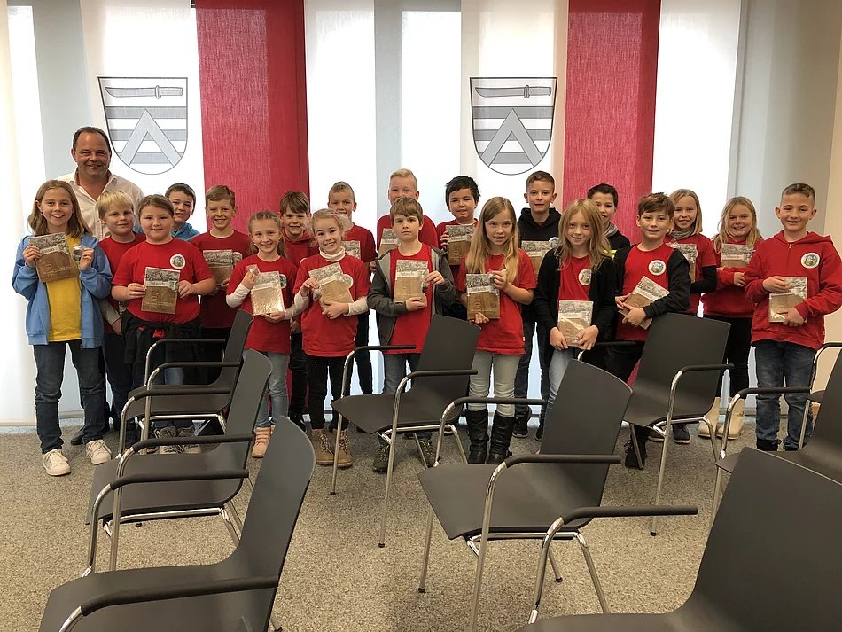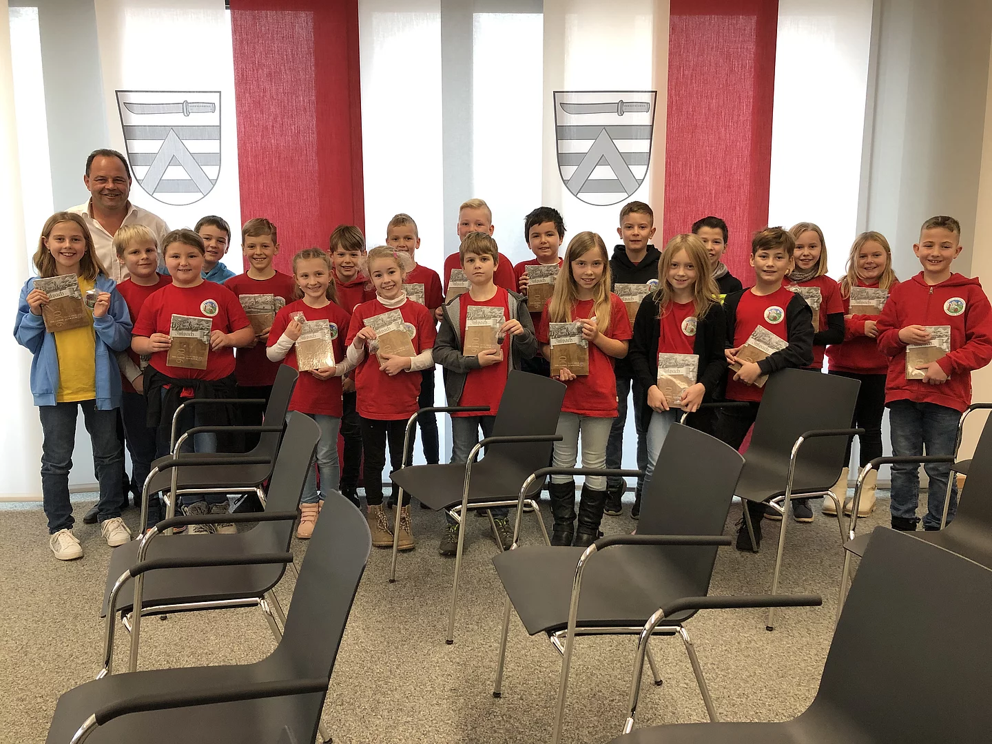 Ganz gespannt waren die Kinder der 4. Klasse als sie Bürgermeister Markus Schusterbauer im neuen Rathaus besuchen durften. Im Vorfeld hatten die Kinder bereits schriftlich einen Brief an ihn verfasst, mit der Bitte, den Bau eines Zebrastreifens beim Rathausplatz zu veranlassen. Nun lud er die Kinder ein, um ihnen umfassend Auskunft zu geben. Zuerst stellte er den Kindern alle Ämter und deren Sachbearbeiter vor. Die Kinder besichtigten alle Räume und erfuhren, welche besonderen Aufgaben hier zu erledigen sind. Dann nahmen die Kinder im kleinen Sitzungssaal Platz. Hier erläuterte Schusterbauer den interessierten Kindern ganz genau, welchen Weg ein Antrag bis zum Entscheid durchläuft. Viele Fragen stellten sie dem Amtschef noch, welche alle zur vollsten Zufriedenheit beantwortet wurden. Am Ende erhielten die jungen Besucher noch je ein Buch der Julbacher Chronik und einen Schlüsselanhänger mit dem Julbacher Wappen.