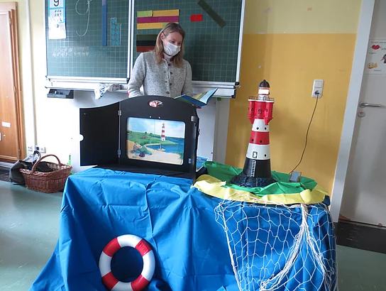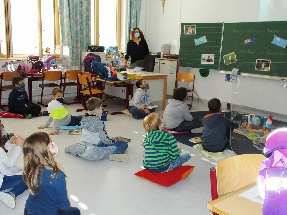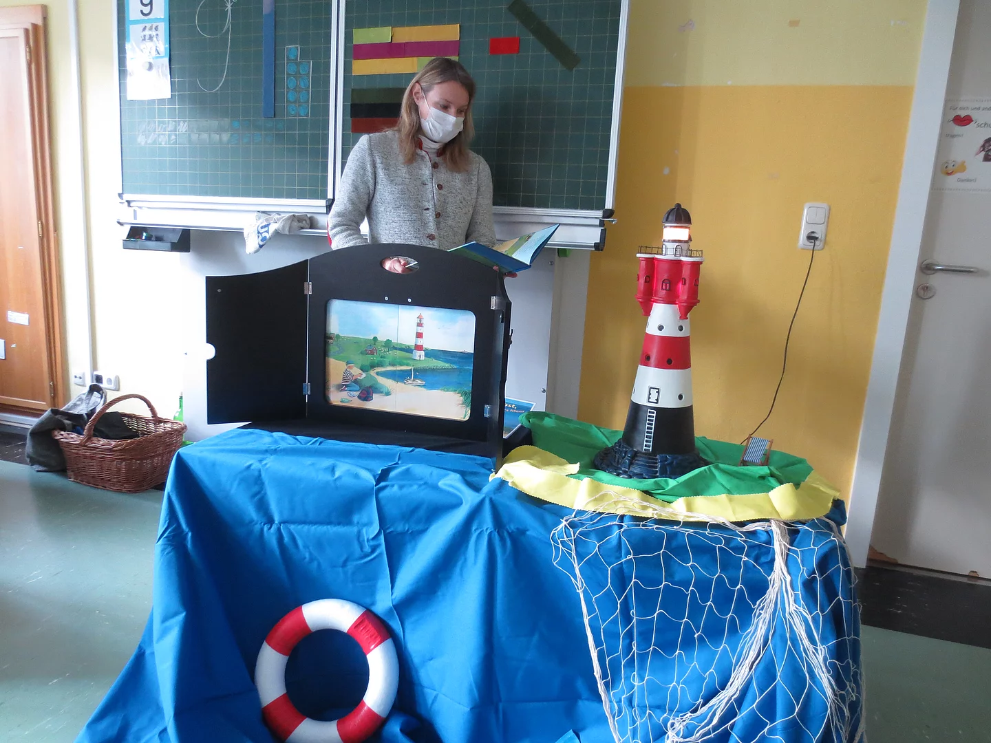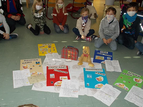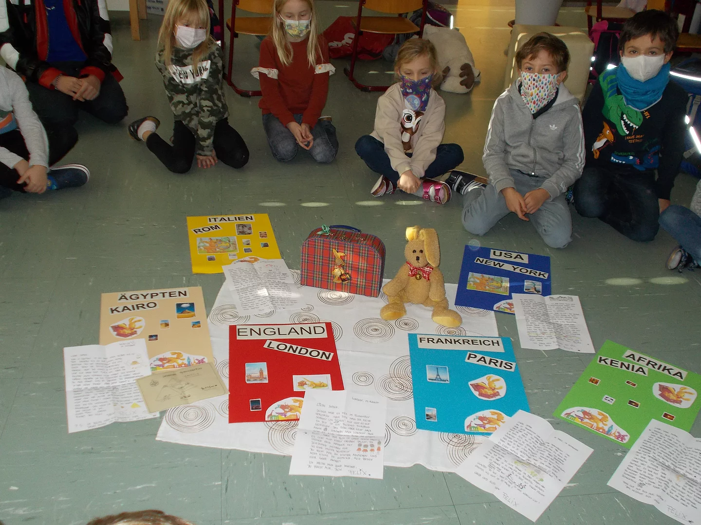 Ein Tag des Vorlesens in der Schule Der bundesweite Vorlesetag am 20.11. stellte für die Schülerinnen und Schüler der Grafen von Schaunberg Schule einen abwechslungsreichen Schulvormittag dar. Schweren Herzens verzichtete man aufgrund der Corona-Pandemie auf fremde Lektoren. So gestaltete jede Lehrkraft in ihrem Klassenzimmer einen Vorleseraum. Da das Motto des Vorlesetages „Europa und die Welt“ zum Titel hatte, wurde auch entsprechend die passende Lektüre ausgewählt. Die Kinder der 3. und 4. Klasse und der 1.und 2. Klasse durften einmal das Zimmer wechseln und zwei Geschichten von zwei Lehrerinnen anhören. Jedes Kind durfte sein Lieblingskissen mitnehmen, um es sich darauf gemütlich zu machen. Tische und Stühle wurden beiseite geschoben, damit genügend Platz geschaffen wurde. Für die 1. Klasse gab es am Vorlesetag das Bilderbuch „Flaschenpost, schwimm übers Meer“, eine Geschichte von Lore Leher mit Bildern von Astrid Krömer. Die Kinder konnten das Erlebnis des Jungen Jens und seiner Flaschenpost mit dem Kamishibai (Erzähltheater) verfolgen. Jens lebt auf einer kleinen Insel in der Ostsee. Dort ist sein Papa der Leuchtturmwärter. Manchmal fühlt sich Jens sehr einsam. Deshalb beschließt er eine Flaschenpost zu schreiben mit der Nachricht: „Wer will mein Freund sein?“ und zeichnet sich selbst noch drauf. Die Flaschenpost landet auf ihrer Reise um die Welt an verschiedenen Orten wie Madagaskar, Sri Lanka, China, Mexiko und sogar Grönland. Überall findet sich ein Kind, das ebenfalls ein Bild von sich auf dem Brief in der Flaschenpost hinterlässt. Die Kinder könnten nicht verschiedener sein! Als die Flaschenpost zu Jens zurückkommt, ist er glücklich – denn Freunde hat er auf der ganzen Welt. Im Anschluss durfte sich jedes Kind, wie die Kinder im Buch, auf einen Papierstreifen malen, so dass ebenfalls eine lange Flaschenpost entstand. Der Vorlesetag in der 2. Klasse begann damit, dass die Kinder „Die Geschichte vom Igel“ vorlasen. Unser Praktikant David stellte dann den Schülern mit dem Leseprojekt „Der erste Satz“ Bücher vor. Verschiedene Bücher wurden mit dem Cover nach oben auf dem Boden ausgelegt. Anschließend wurde jeweils eine zu jedem Buch vorbereitete Karte, auf der nur der erste Satz des Buches stand, vorgelesen. Die Schüler versuchten nun zu erraten, zu welchem Buch dieser Satz stammen könnte und David stellte dann das Buch kurz vor. Neugierig auf Bücher gemacht, durften die Kinder sich hinterher Bücher ausleihen. Zu Beginn der 3. Stunde begrüßte zunächst Felix, der Hase, der vielen Kindern nicht mehr bekannt war, die Schüler. Danach wurde aus dem Buch „Briefe von Felix – Ein kleiner Hase auf Weltreise“ vorgelesen. In den Briefen aus London, Paris, Rom, Kairo, Kenia und New York, die der verlorengegangene Kuschelhase Felix an Sophie schrieb, erfuhren die Kinder viel Interessantes über diese Städte, die bekannten Bauwerke und die Menschen, die dort leben. Gott sein Dank kehrte der kleine Weltenbummler Felix am Ende des Buches rechtzeitig vor Weihnachten zu Sophie, die schon sehnsüchtig auf ihn wartete, zurück. Petra Stiller, Klassenlehrerin der 3. Klasse, wählte die Briefe von Herrn Lehmann, um Interessantes über fremde Länder zu erfahren. Im Klassenzimmer der 3. Klasse begaben sich die Kinder zusammen mit dem Gartenzwerg Herr Lehmann aus der Buchreihe „Herrn Lehmanns Reisen um die Welt“ auf die Reise. Zunächst erfuhren sie im Hörbuch zum ersten Band „Abenteuer in Alaska“, wie der kleine Gartenzwerg Herr Lehmann zum Reisen gekommen ist. Um spannende Geschichten für seine Besitzerin Frau Sauertopf zu sammeln, schmuggelt er sich in den Koffer des reiselustigen Nachbarn und bereist mit diesem die Welt. Anschließend wurden den Kindern einige Episoden aus dem zweiten Band „Abenteuer in Neuseeland“ vorgelesen. In kurzen Videos konnte man im Tonstudio dem Sprecher des Hörbuches Henning Krautmacher zuhören, die Autorin Jutta Maas kennen lernen und der Illustratorin Saskia Gaymann auf die Finger schauen. Am Schluss erhielt jedes Kind einige leckere Rezepte, die Herr Lehmann von seinen Reisen mitgebracht hat. Katharina Hornung in der 4. Klasse verknüpfte das HSU-Thema „Wasser“ mit dem Buch „Aminatas Entdeckung“ von Rudolf Schmitt (Hrsg.), um die Problematik der Wasserversorgung in fernen Ländern zu thematisieren und um Einblick in das Leben eines afrikanischen Kindes zu gewinnen. Die Kinder eines afrikanischen Dorfes sind alle schwer erkrankt, und keiner weiß warum. Bis Aminata, ein Mädchen aus einem Dorf im Senegal, entdeckt, dass die Ziegen den Brunnen verunreinigen. Nun wird der Brunnenschacht höher gebaut, gereinigt und feierlich eingeweiht. Das ansprechend illustrierte Buch wurde schrittweise vorgelesen, dazwischen erhielten die Kinder Informationen und Hintergrundwissen. Im Anschluss bearbeiteten die Kinder noch ein Geheft zum Thema Afrika, wobei man u.a. Erdnüsse verkostete, afrikanische Spiele ausprobierte, das Wassertragen auf dem Kopf praktizierte und Zöpfe flechten konnte. Alle Kinder freuten sich über die interessanten Geschichten und die gemütlichen Vorlesestunden.