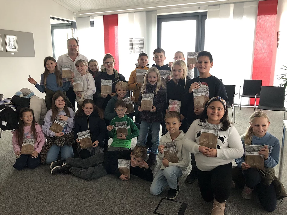 Zur praktischen Erarbeitung des HSU-Themas "Gemeinde" steht bei allen 4. Klassen ein Besuch im örtlichen Rathaus auf dem Plan. So machte sich auch die 4. Klasse in Julbach auf den kurzen Weg zum Rathaus. Dort wurden sie bereits freundlich vom ersten Bürgermeister, Herrn Markus Schusterbauer erwartet, der viel Zeit für den Besuch eingeplant hatte. Neugierig durften die Kinder in alle Räume mit dem Sitz der unterschiedlichen Ämter schauen und die betreffenden Mitarbeiter namentlich kennen lernen. Bereits hier konnten die passenden Fragen, welche vorab notiert wurden, an die "Experten" gestellt werden. Im Sitzungssaal nahmen die Kinder Platz und fühlten sich wie "die Großen". Hier wurden noch viele Fragen an den Bürgermeister gestellt, der diese mit viel Geduld lückenlos beantwortete. Zum Abschied erhielten jeder Viertklässler das Heimatbuch der Gemeinde, welches zur Erkundung der Geschichte Julbachs im Unterricht als Nachschlagewerk eingesetzt wird. Auch der Schlüsselanhänger mit dem Julbacher Wappen erfreute die Kinder sehr. Vom modernen Rathaus waren die Schülerinnen und Schülern sichtbar beeindruckt.