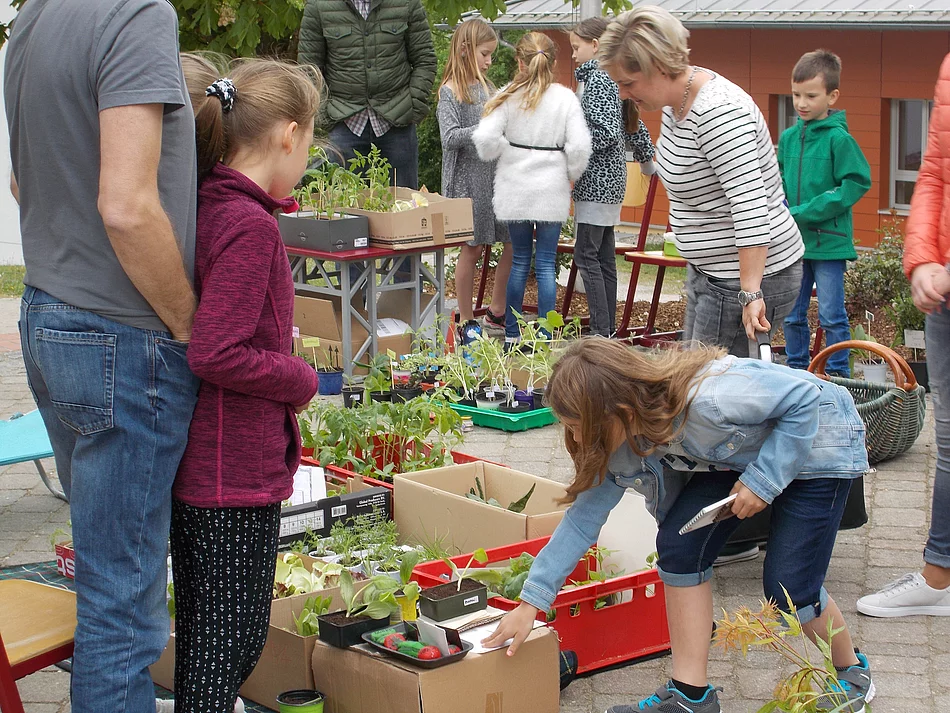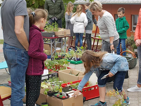 Zum ersten Mal fand an der Grundschule ein Pflanzenflohmarkt statt. Viele Kinder verkauften Gemüsepflänzchen, Ableger von Blumen und Kräutern oder Zimmerpflanzen. Sie zeigten sich recht geschäftstüchtig und freuten sich über ihre Einnahmen. Viele Julbacher besuchten den Flohmarkt und kauften preisgünstig ein. Der Stand des "Eine Welt Ladens" aus Pfarrkirchen mit fair gehandelten Produkten wurde ebenso nahezu leer gekauft. Zeitgleich mit dem Verkauf legte der Landschaftspflegeverband mit Frau Dorothee Hartmann eine Dorfwiese die" Biene Maja Wiese" an. Hier halfen die Kinder der 1. und 2. Klasse fleißig beim Einpflanzen. Frau Marianne Watzenberger machte mit den Kindern, die keine Pflanzen verkauften, eine interessante Wiesenführung mit Spielen. Der Elternbeirat bot gesunde Brote und Getränke an. Am Nachmittag bestückten die Kinder der OGTS mit ihren Betreuern die neuen Hochbeete mit Gemüsepflanzen und hoffen im Sommer auf reiche Ernte. Insgesamt war es ein sehr schöner Vormittag für alle Beteiligten. Mit diesen Aktionen im Rahmen der Umweltschule wurde das Bewusstsein der Kinder für den Umweltgedanken und die Liebe zur Natur wieder ein wenig mehr gestärkt.