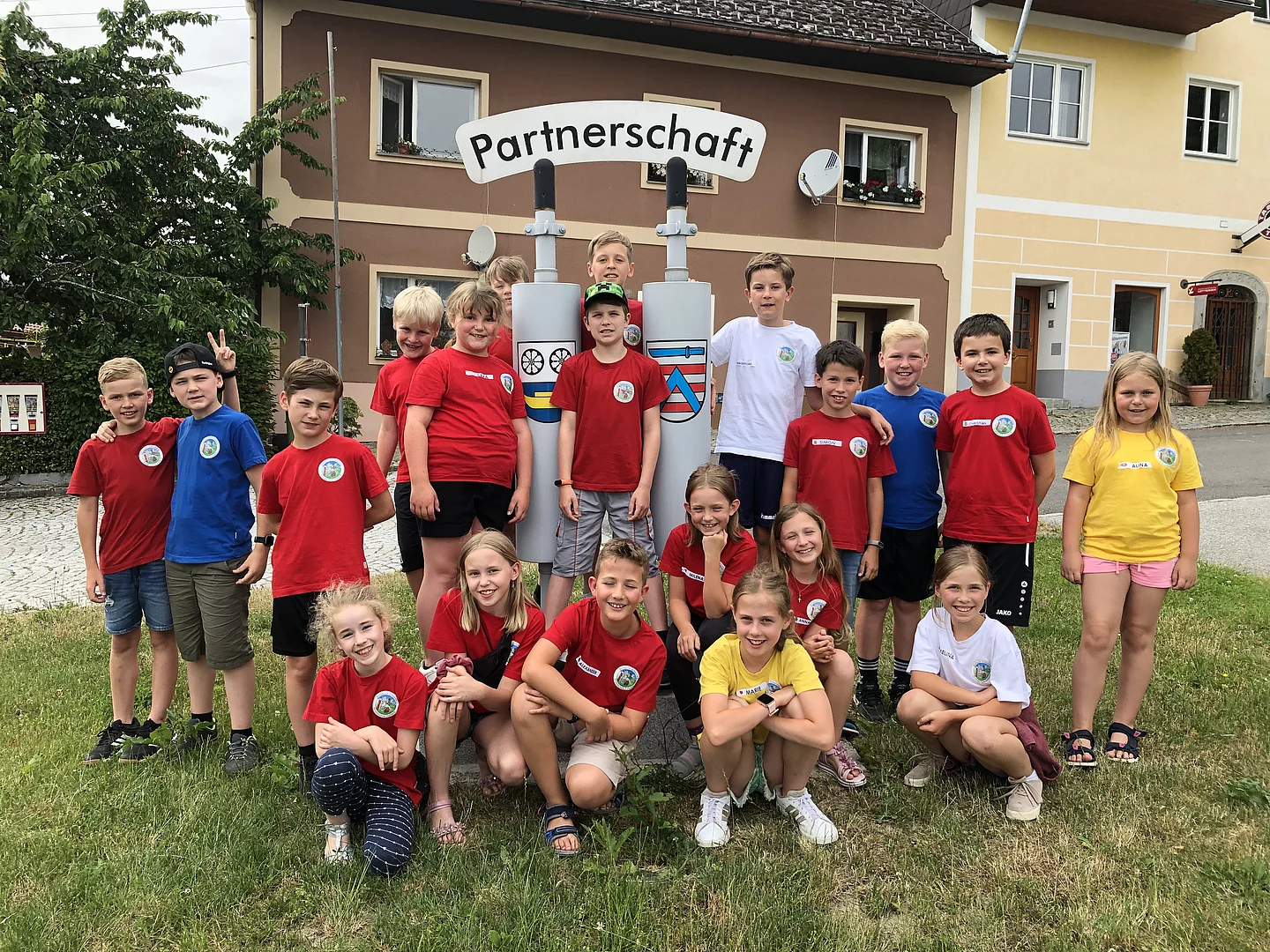 Da heuer die Gemeindepartnerschaft 20jähriges Jubiläum feiert, fuhr die 4. Klasse der Grafen von Schaunberg Schule nach Julbach in Oberösterreich. Als Unterkunft diente die Adalbert-Stifter Jugendherberge in Aigen/Schlägl. Gleich am ersten Tag erkundete man die Partnergemeinde im Mühlviertel. Die typischen Häuser der Gegend im Steinbloßstil gefielen den Kindern ebenso wie die weite grüne Hügellandschaft. Bei ihrem Rundgang stellten die Kinder fest, dass es große Gemeinsamkeiten mit ihrem Ort in Niederbayern gibt. So wird die Ortsmitte aus Schule, Kirche, Rathaus und Kindertagesstätte gebildet. Schließlich entdeckten die Kinder neben dem Annabrunnen das Denkmal der Partnerschaft mit den beiden Wappen der jeweiligen Gemeinden. Am nächsten Tag war das Ziel die Moldau. Gespannt waren die Viertklässler den Fluss zu sehen, welchen sie im Musikunterricht als berühmtes Werk kennengelernt hatten. Da den Schülerinnen und Schülern kein Besuch im Rathaus oder der Schule der Partnergemeinde ermöglicht wurde und der Wunsch bestand, eine andere europäische Schule kennen zu lernen, konnte im Vorfeld über die EUREGIO Bayern der Kontakt zur Grundschule in Horice na Sumave (Höritz) beim Moldaustausee hergestellt werden. Am Vormittag wurden die Julbacher Grundschüler dort erwartet und von der Direktorin Frau Jana Curdova herzlich empfangen. Ihr zur Seite stand eine vom dortigen Rathaus zur Verfügung gestellte Dolmetscherin. Bei der Führung durch das Schulhaus mit 45 Kindern wurde erklärt, dass die Klassen 1-5 gemeinsam unterrichtet werden, wobei die 4. und 5. Klasse aus nur jeweils einem Schüler bzw. Schülerin besteht. Besonderen Eindruck hinterließen u.a. der Computerraum und der sehr ansprechende Speisesaal für die Ganztagesbetreuung. Gemeinsam spielte die 3. Klasse aus Höritz mit den Julbachern in der neu renovierten Turnhalle ein Spiel und verstanden sich sehr gut auf dem riesengroßen Spielplatz, der eigens für die Schulpause geschaffen wurde. Die Direktorin versicherte, dass sie sich sehr über den Besuch und den Austausch freue. Am Ende wurden die jungen Besucher mit Süßigkeiten und Getränken versorgt. Der Bürgermeister von Höritz schenkte jedem eine Ansichtskarte und eine Anstecknadel mit der Rose, dem Wappensymbol der Stadt. Im benachbarten Horni Plana (Oberplan) suchte man das Geburtshaus von Adalbert Stifter und genoss ein Bad im Moldaustausee. Mit der kleinen Fähre setzte man über und fuhr weiter nach Schöneben. Hier bestiegen alle den 24 m hohen Turm „Moldaublick“, der einst auf Initiative der Vertriebenen geschaffen wurde. Die Heimfahrt am letzten Tag sah noch eine Hausralley im Haus am Strom beim Kraftwerk Jochenstein vor. Mit vielen interessanten Eindrücken kehrte die 4. Klasse wieder zurück.