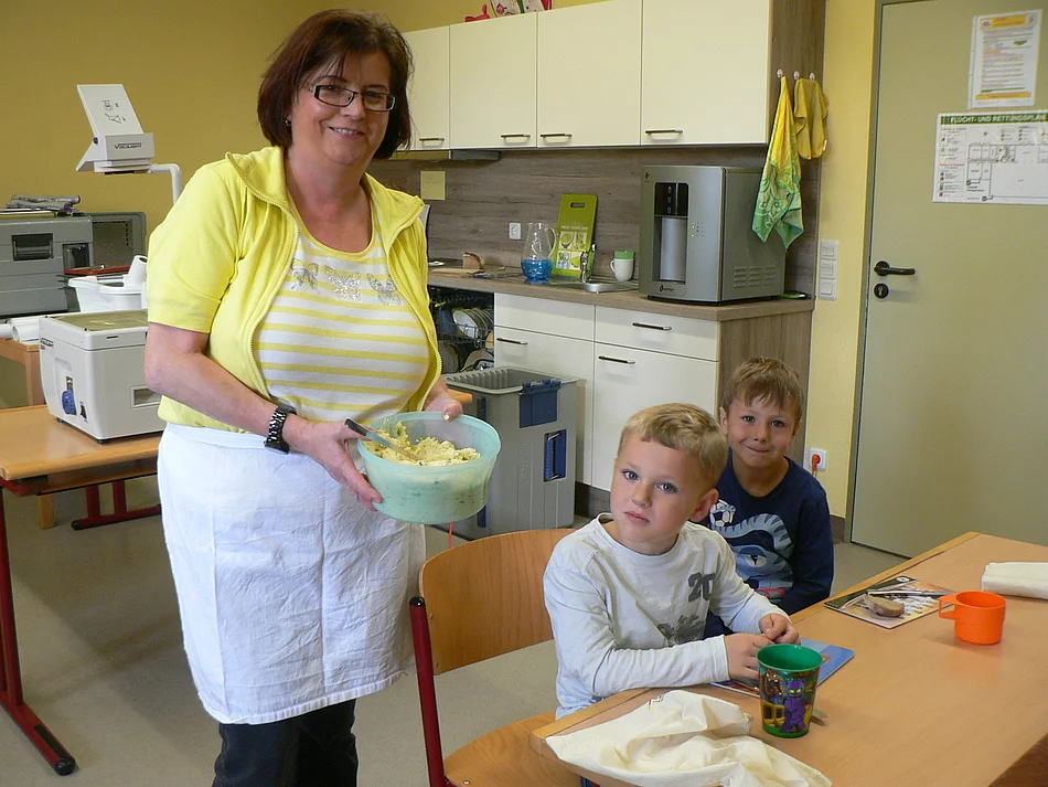 Woche der Gesundheit und Nachhaltigkeit, 1. Klasse Am Montag kam in der 1. und 2. Stunde Frau Haderer zu uns. Mit der Frage „Wer war denn schon einmal auf dem Bauernhof?“ regte sie die Kinder zum Erzählen eigener Erlebnisse an und leitete damit zum Thema Milch über. Zuerst zeigte sie anhand einer Folie den Weg der Milch von der Kuh auf dem Bauernhof bis zum Verbraucher, also zu uns, auf. Frau Haderer erklärte den Kindern, dass Milch und alle Milchprodukte sehr ge-sund sind. Milch enthält neben hochwertigem Eiweiß, bekömmlichem Milch-fett und Milchzucker auch wichtige Mineralstoffe und Vitamine. Milch und Milchprodukte sind bedeutende Lieferanten für Kalzium und Vitamin B12. Be-sonders Kalzium ist sehr wichtig für den Aufbau von Knochen und Zähnen. Ein großer Feind von Kalzium ist Cola, weil die Säure im Cola Kalzium vernichtet. Die empfohlene tägliche Kalziumzufuhr für Kinder ist mit 2 Gläsern Milch bereits gedeckt. Da die meisten Kindermilchprodukte sehr viel Zucker enthalten, sind diese oft nicht empfehlenswert. Dann erklärte Frau Haderer den Kindern, warum auch die Kartoffel, die gerade geerntet wird, so gesund ist. Da sie sehr viel Vitamin C enthält, nennt man sie bei uns auch die „Zitrone des Nordens“. Zum Schluss durften die Kinder Milch trinken und „Erdäpfelkas“, den Frau Haderer mitgebracht hatte, probieren. Im Heimat- und Sachunterricht waren Zähne und Zahngesundheit ein wichtiges Thema. Um eventuelle Lernblockaden zu lindern oder zu lösen wurden während der ganzen Woche verstärkt Übungen aus der Pädagogischen Kinesiologie gemacht. In dieser Woche waren es hauptsächlich Übungen zur Rechts-links-Blockade.