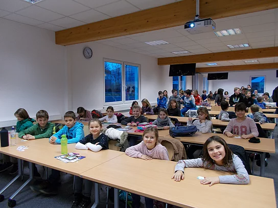 Da das Thema "Nachhaltigkeit und Umweltschutz" im Rahmen der Umweltschule auch in diesem Jahr im Unterricht Thema sein wird, machte sich die 3. Klasse und ein Teil der 4. Klasse auf zur Kinderuni der Technischen Hochschule Deggendorf in Pfarrkirchen, um an der Vorlesung "Nachhaltigkeit- Umweltschutz geht uns alle an" teilzunehmen. Klassenleitung und Eltern bildeten Fahrgemeinschaften, um die Kinder auf den Campus zu bringen. Sehr pünktlich sein lohnte sich, da man die ersten Reihen im Hörsaal belegen konnte. Rasch füllte sich der Raum mit ca. 90 wissbegierigen Kindern allen Alters. Gleich zu Beginn erhielten die Zuhörer einen "Studentenausweis". Bei jeder Kindervorlesung bekommt man einen Aufkleber, bei sechs besuchten Veranstaltungen eine Urkunde. Prof. Josef Steretzeder begrüßte die Kinder, die in kleineren Gruppen aufgeteilt wurden und von zwei Mitarbeitern im Wechsel betreut wurden. Er führte in die aktuelle Problematik ein mit Hinweis auf einen Artikel in der Süddeutschen Zeitung, der soeben erschien. Dass in einigen Jahren die Menge des Plastikmülls größer sein wird als die der Fische, stimmte ebenso nachdenklich wie die 462 kg Müll, die jedes Jahr pro Kopf in Deutschland produziert wird. Deshalb wurden mit den Kindern Tipps zur Abfallvermeidung besprochen. Der interessante Ansatz "cradle to cradle" ( von der Wiege zur Wiege) bemüht sich um einen Wiederverwertung der Abfälle ein Leben lang. Viel zu schnell verging die Zeit, denn alle Kinder wollten zu Wort kommen. Ebenso eifrig beteiligten sich die Kinder an der Runde des Philosophierens. Zunächst mussten Steckbriefe den Arten von Müll, die in der Mitte des Gesprächskreises lagen, zugeordnet werden. Danach stand die Frage:"Wann ist Müll Müll?" im Raum, die die Kinder zu vielen weiterführenden Gedanken animierte. Auch hier verging die Zeit zu schnell, und so wurde nach ca. 90 Minuten die Heimreise angetreten.
