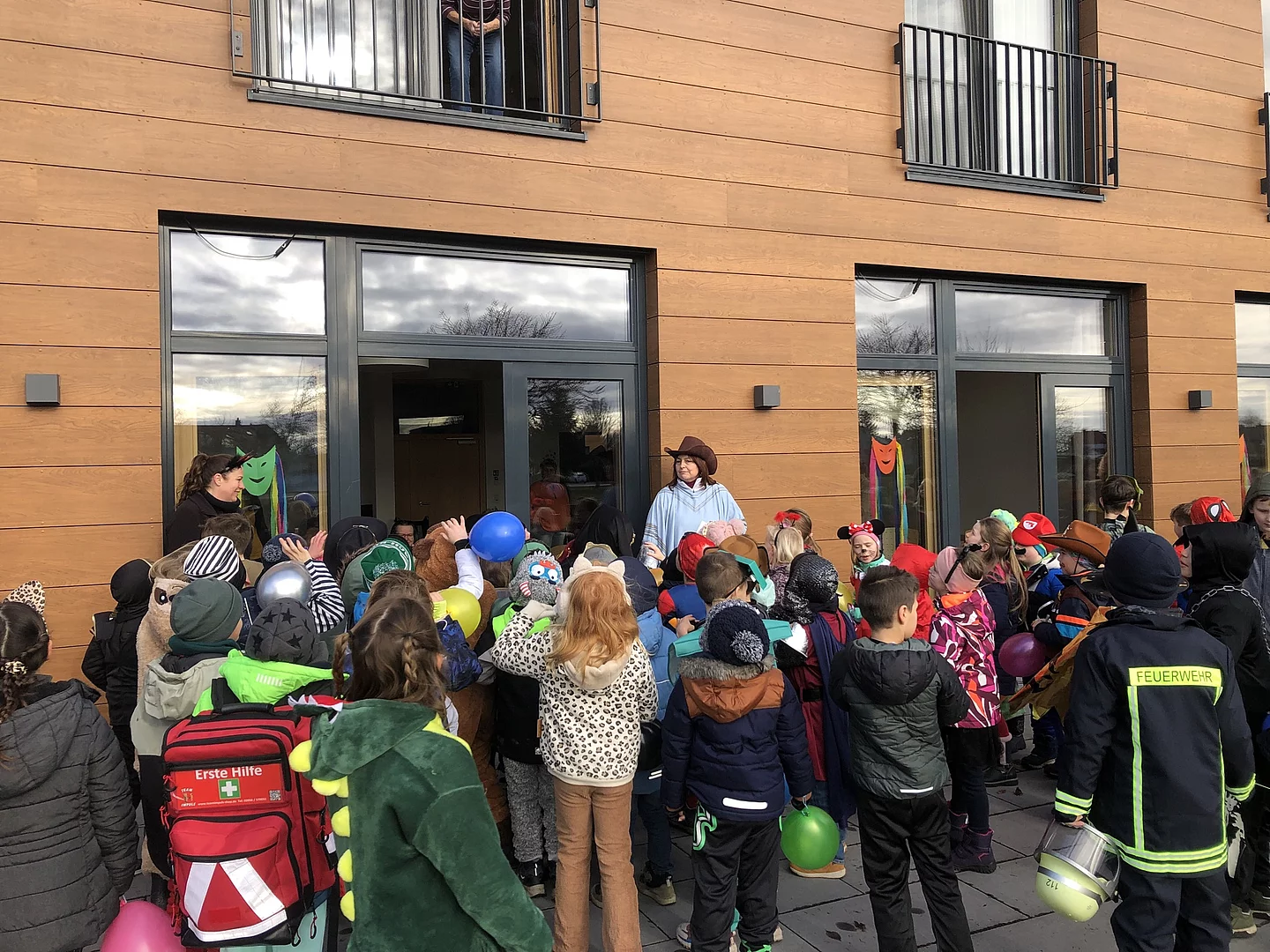 Wieder zog ein bunter Gaudiwurm bei bestem Wetter durch Julbach. Nach der Pause durften sich die Kinder maskieren und dann startete der Faschingsumzug. Heuer angeführt von einem geschmückten roten Kleinwagen, den Maxi Stiller lenkte in Begleitung seiner Schwester Hannah. Aus dem Kofferraum erschallte die Faschingsmusik und machte auf die Kinder aufmerksam. Zuerst machten die Kinder Halt beim Seniorenheim und sangen neben dem Fliegerlied noch zwei Faschingslieder. Anschließend setzte sich die Reise fort zum Sportplatz. Dort warteten schon die Mitglieder des Elternbeirates mit Krapfen und Getränken. Nach einer großen Pause tritt man den Heimweg an zurück zur Schule. Die Kinder und Erwachsenen hatten wieder sichtlich Spaß an dem bunten Treiben.