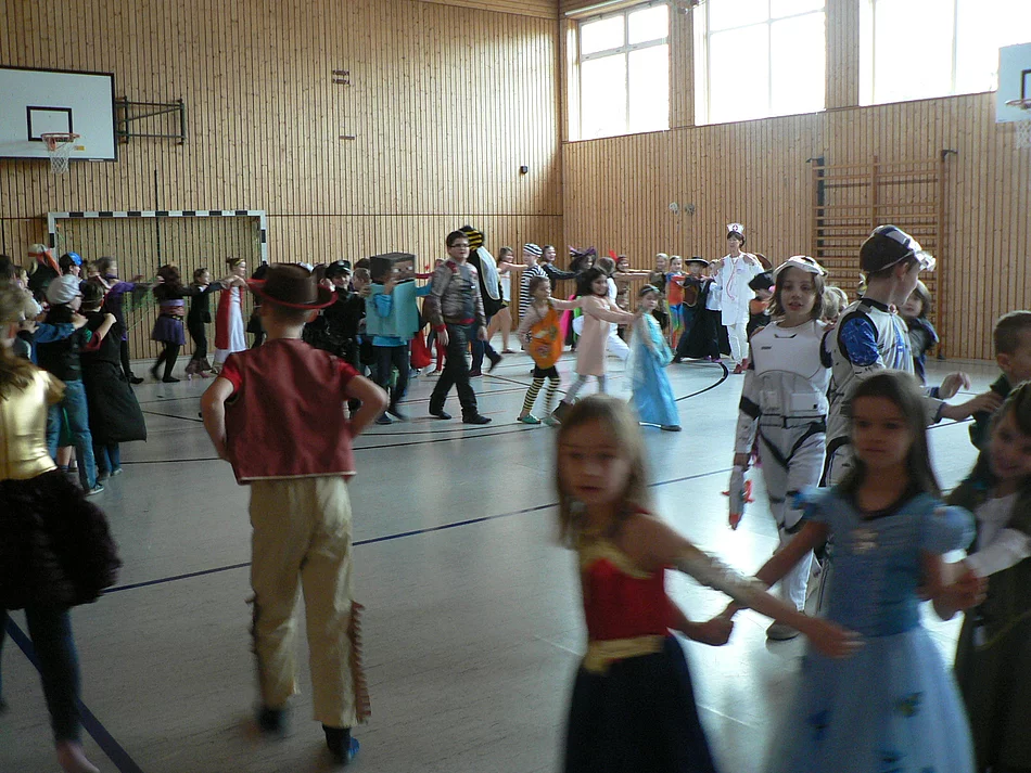 Lustig und bunt wurde der letzte Schultag vor den Faschingsferien gefeiert. Wie auch in den Vorjahren durften die Kinder ihr Kostüm mit in die Schule bringen. Nach der Pause konnten sich alle verkleiden und schminken, dann gings in die Turnhalle. Zuerst wurden alle Kostüme bei der großen Polonaise bewundert, dann spielten die Kinder gemeinsam oder ließen sich zum Tanzen hinreißen. Der Elternbeirat zeigte sich großzügig und spendierte wieder leckere Krapfen für alle.Vielen Dank dafür!