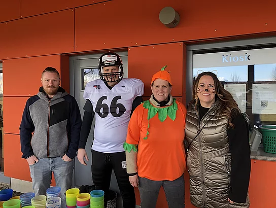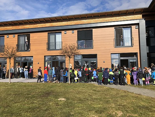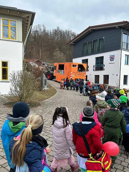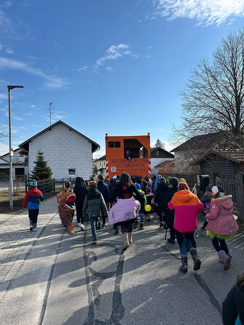 Auch heuer konnte die ganze Schulfamilie sich am letzten Tag vor den Faschingsferien mit dem Faschingswagen auf den Weg machen. Wiedrum organisierte der Elternbeirat die Bereitsstellung des Faschingswagens und die Verköstigung der Kinder. Nach der Pause setzte sich der Zug in Bewegung in Richtung Seniorenheim Zebhauser. Dort wurden die Kinder bereits von den Angestellten und den Bewohnern freudig erwartet. Aufgrund des tollen Wetters fand der Auftritt im Freien statt, sodass alle gemütlich vor den geöffneten Fenstern zusehen konnten. Drei Faschingslieder gaben die Kinder zum Besten und es wurde mitgeschunkelt und geklatscht. Danach ging es weiter zum Süportplatz. Hier wurden die Kinder vom Elternbeirat erwartet, der Krapfen und Getränke bereithielt. Nachdem sich die Kinder sich am Spielplatz vergnügt hatten, machte man sich auf den Weg zurück zur Schule um in die Ferien entlassen zu werden.
