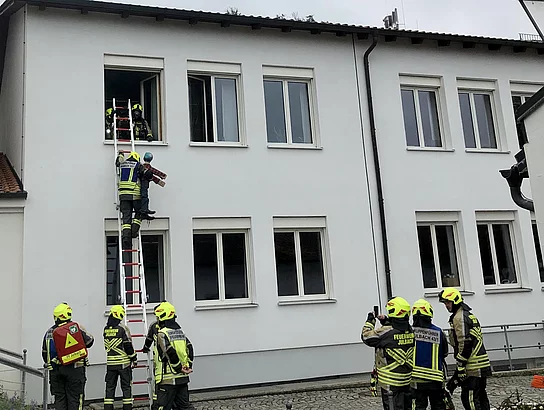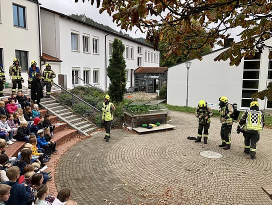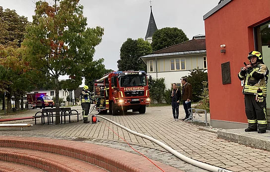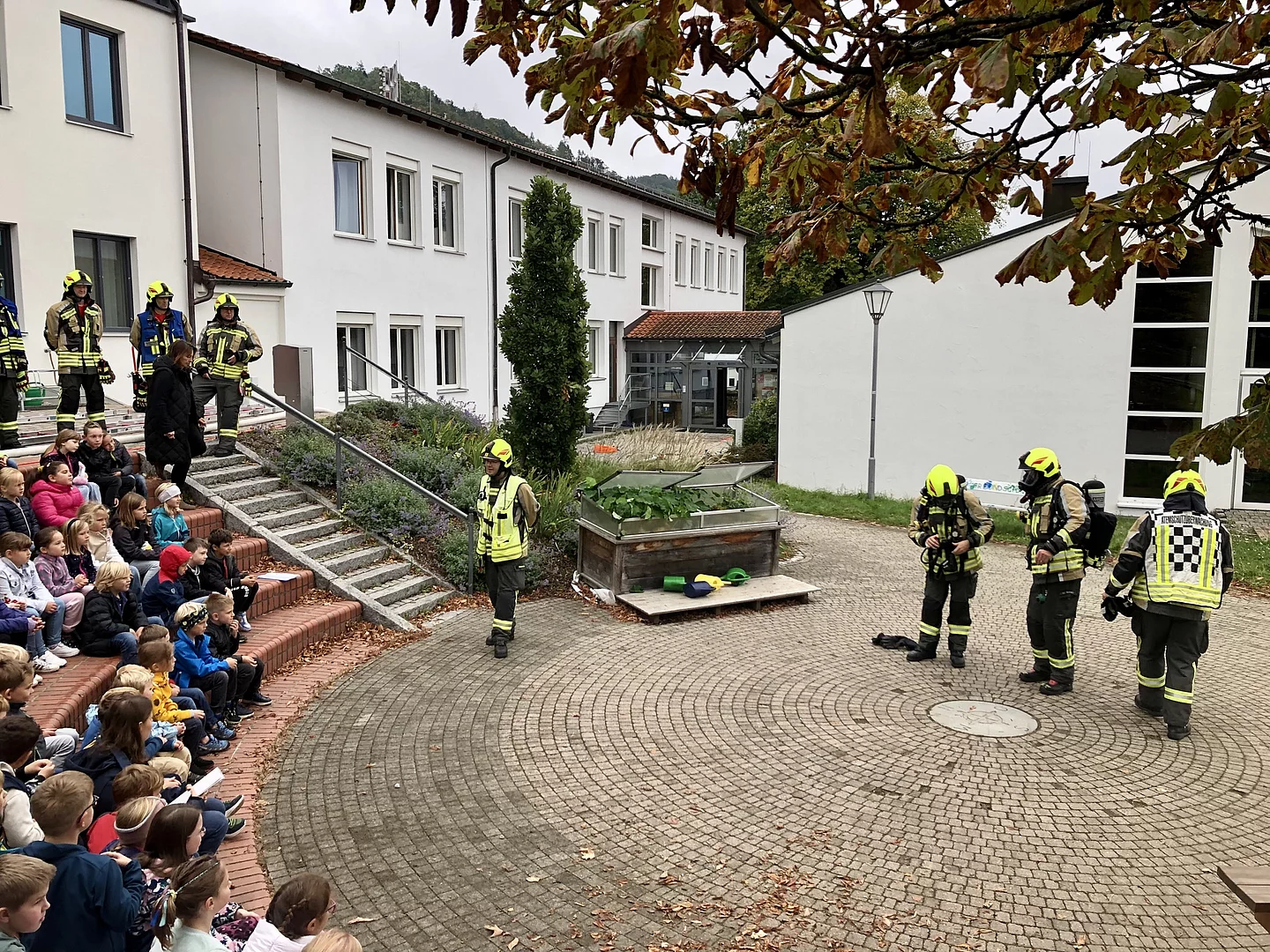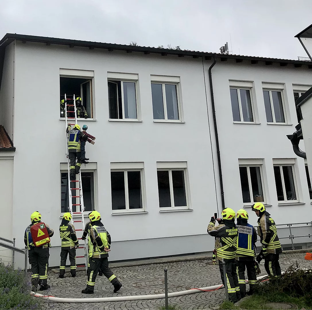 Der erste Probealarm im neuen Schuljahr fand im Zusammenhang mit einer Feuerwehrübung statt, um im Notfall richtig handeln zu können. Diese Übung wurde im Vorfeld mit der FFW Julbach und der Schulleitung geplant. Nach Auslösen des hausinternen Alarms und der Absetzung des Notrufes wurde die Schule evakuiert. Da der erste Probealarm angekündigt war, waren die Kinder bestens vorbereitet und verließen geordnet nach Alarmplan die Schule und begaben sich zum Sammelpunkt Kirche. Nach Bekanntgabe der Anzahl evakuierter Personen an die Rettungsleitung durften alle wieder zurück zur Schule. Nun demonstrierten die Feuerwehrleute die “Rettung einer vermissten Person” im ersten Stockwerk. Eine Übungspuppe wurde zuvor deponiert und wurde per Leiter sicher geborgen. Nach der Meldung “Einsatz beendet” fand noch eine Nachbesprechung mit dem Leherkollegium und den Einsatzkräften statt. Dort eruierte man noch Verbesserungsmöglichkeiten im Alarmplan der Schule. In der Hofpause konnten die Kinder die Einsatzfahrzeuge und die Ausrüstung in Augenschein nehmen. Die Schule dankt Herrn Andreas Schreiner und seinem Team, welches sehr zahlreich vor Ort war und sehr bemüht ist, gut gerüstet für den Ernstfall zu sein.