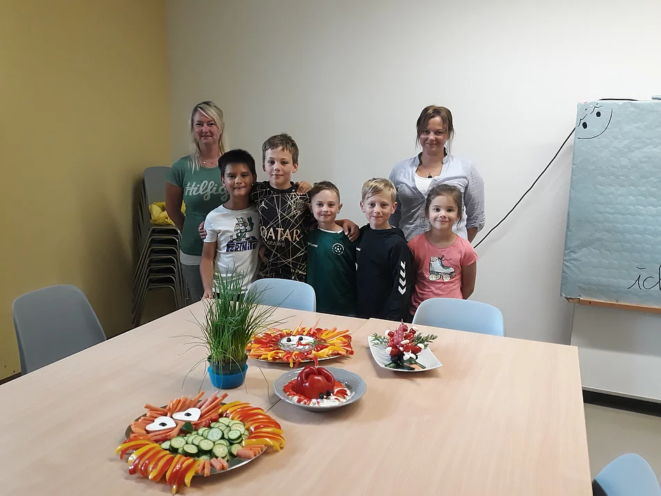 Für den Gemüse-Zoo musste viel frisches Gemüse geschnitten werden. Die fertigen Gemüsetiere sahen toll aus.