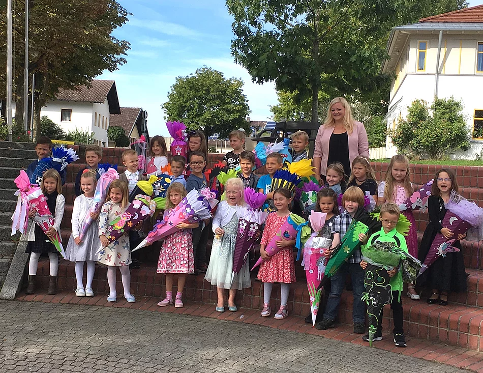 24 Kinder starten dieses Jahr an der Grundschule Julbach in der ersten Klasse. Die zehn Buben und vierzehn Mädchen kamen am 1. Schultag mit Schultaschen und schweren Schultüten in Begleitung von Eltern, Großeltern und Geschwistern ins Klassenzimmer und wurden dort von ihrer Klassenlehrerin Frau Pringsheim und der Rektorin Frau Hornung begrüßt. Nach dem gemeinsamen Gottesdienst fand die erste Unterrichtsstunde statt, bei der eine Geschichte über eine Schultüte vorgelesen wurde. Guten Start und alles Gute für die Grundschulzeit! Herzlich willkommen!
