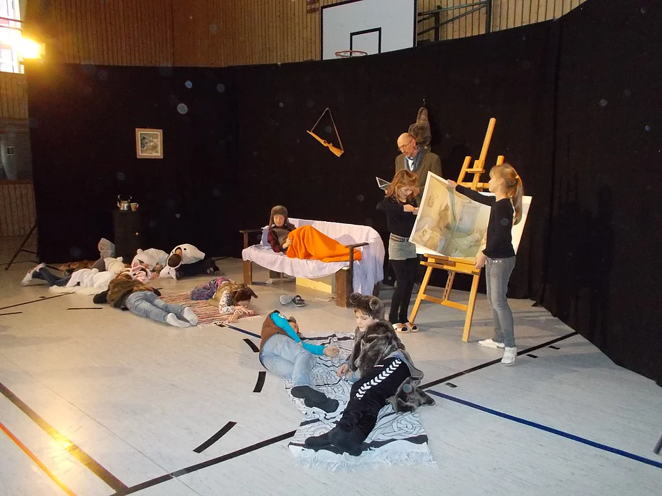 An der Grafen von Schaunberg Schule wurde die Vorweihnachtszeit mit einer Lesewoche beendet. Den Startschuss dazu lieferte eine interaktive Lesung mit Gernot Ostermann vom „Theater spielzeit“. Das „Kinderbuch „Es klopft bei Wanja in der Nacht“ wurde ihnen zunächst mithilfe großer Bildtafeln vorgelesen, danach durften die Kinder die Geschichte im Theaterworkshop nachspielen und in die einzelnen Rollen schlüpfen. Da die Lesung für jede Klasse einzeln stattfand, kam auch jedes Kind zum Einsatz. Die erste Klasse startete die Märchenwoche am Montag mit einer Erzählrunde. Dabei wurde gesammelt, welche Märchen die Kinder schon kennen. Von zuhause brachten die Erstklässler verschiedene Märchenbücher mit, in denen fleißig geblättert wurde. In den kommenden Tagen erarbeiteten die Schülerinnen und Schüler in Gruppen an jeweils einem bekannten Märchen. Mit Hilfe von Mp3-Playern wurden die Geschichten angehört und angeschaut und wiederholt. Anschließend sortierten die Kinder Bilder in die richtige Reihenfolge und gestalteten tolle Plakate, die noch mit selbst geschriebenen Wörtern und kleinen Bildern ergänzt wurden. Nun übten sich die Erstklässler als Märchenerzähler und probten fleißig, wie man ein Märchen spannend und gut erzählt. Am Donnerstag wurden schließlich die Geschichten der einzelnen Gruppen in kleinen Referaten vor der ganzen Klasse vorgetragen. Außerdem las die 1. Klasse täglich in der Nikolauslektüre „Die Weihnachtsmaus sucht ein Zuhaus“, in der es um die kleine Maus Alma geht, die täglich auf der Suche nach einer gemütlichen Bleibe ein neues Erlebnis hat. Auch im Adventskalender befand sich täglich ein kleiner Lesetext, bei dem es um das Schaf Edgar und das Schwein Siggi ging. Alle Kinder der Klasse und auch Frau Pringsheim kamen in der Geschichte vor. In die Märchenwelt tauchte auch die 2. Klasse ein. Jeden Tag vertieften sich die Kinder in die Geschichten und erweiterten zunehmend ihr Wissen. Dazu dienlich waren die spielerischen Formen des Märchenquiz, das Schreiben von Märchenelfchen, märchenhafte Rechenaufgaben, ein Bilderquiz und das Erkennen von Fehlern in bestimmten Märchen. Außerdem wurden Lesezeichen gebastelt für die nächste Lektüre im Klassenverband. Auch in der dritten Klasse stand die Lesewoche ganz unter dem Motto Märchen. Besonders im Fach Deutsch wurden viele verschiedenen Märchen gelesen und angehört. Die Kinder gestalteten ein eigenes Märchenlapbook, schmökerten in vielen unterschiedlichen Märchenbüchern und fanden so zum Beispiel heraus, welche Figuren, Gegenstände und Zahlen in Märchen eine große Rolle spielen. Auch die Gedichtetalley durch das Schulhaus,die auch die 4. Klasse durchlief, bereitete den Drittklässlern sichtlich Freude. Das Begleitheft bot zu jedem gelesenen Gedicht Arbeitsaufträge an, die Gelegenheit bot, selbst kreativ zu werden. Sogar in Mathematik wurden viele märchenhafte Sachgeschichten und Knobelaufgaben gelöst. Das musikalische Märchen "Der Nussknacker" von Tschaikowski lernten die Kinder in Musik kennen. Der krönende Abschluss der ereignisreichen Woche bildete ein Märchenquiz, bei dem die Schülerinnen und Schüler ihren großen Wissenschatz anwenden konnten. Am Montag befasste sich die 4. Klasse ebenfalls mit dem Thema „Märchen“. Zunächst wurde die Geschichte des Froschkönigs (in einer unkonventionellen Version von Janosch) gelesen. Danach durften die Kinder selbst ein ihnen bekanntes Märchen verfremden oder ein eigenes erfinden. Diese „Minimärchen“ wurden zu einem eigenen kleinen Märchenbuch gefasst. Danach wurde Zeitung gelesen. Eine Sonderausgabe für Kinder mit dem Thema „Die 23 spannendsten Rätsel der Menschheit“ bot interessante und anschauliche Informationen, besonderen Phänomenen auf den Grund zu gehen. Am Donnerstag wurde die Schule von vielen „Promis“ besucht. Pfarrer Ludwig Zitzelsberger, Gabriele Wolfer (ehemalige Lehrerin an der GS Julbach), Gitti Hergeth (Burgfreunde), Stefanie Becker (JaS Beauftragte), Ingrid Köppl (Leiterin der Gemeindebücherei) und Stefan Striegl (Elternbeiratsvorsitzender) erklärten sich bereit, einer Gruppe von Kindern eine selbst gewählte Geschichte vorzulesen. Alle machten es sich gemütlich, um der Geschichte zu lauschen. Die Palette der vorgelesenen Büchern reichte von „Schnüpperle“ über Pippi Langstrumpf, „Die kleine Hummel Bommel“, bis zu Nikolausgeschichten. Anschließend war noch Zeit, sich in der Leserunde auszutauschen. Im Anschluss suchten sich die Viertklassler ihre eigenen Lieblingsbücher aus und arbeiteten eine individuelle Buchvorstellung in Plakatform aus, die den Mitschülern noch präsentiert werden soll. Am Freitag durften alle Schülerinnen und Schüler ihre ausgelesenen Bücher beim Bücherflohmarkt anbieten. Es herrschte ein reges Treiben von Kindern und Erwachsenen mit großem Interesse an Büchern. Viele gut erhaltene Bücher wechselten zu Taschengeldpreisen den Besitzer. So mancher brachte mehr Bücher mit nach Hause als er verkaufte. Eingedeckt mit so viel Lesefutter für die Ferien erzielte die Lesewoche bei den Kindern einen wahrlich nachhaltigen Effekt!