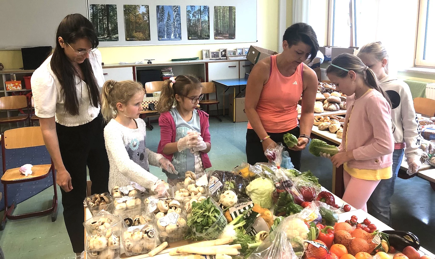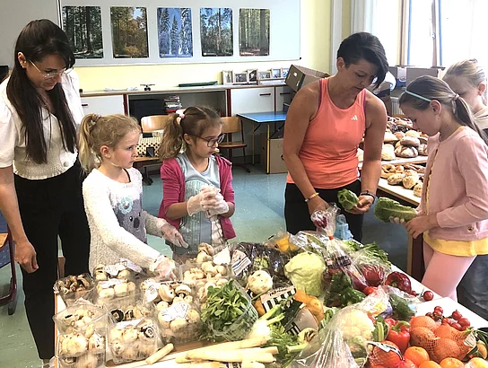 Ein weiteres Umweltthema lag Melanie Sagmeister und Stefanie Heimerl am Herzen. Um Lebensmittelverschwendung entgegenzuwirken lautete das Thema „foodsharing“. Dabei wurde den Kindern aufgezeigt, dass die große Menge an Lebensmittelresten, die vorher bei Supermärkten eingesammelt wurde, noch verwendet werden kann, um nicht im Müll landen zu müssen.