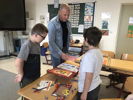 Pascal Adam griff noch einmal das HSU-Thema „Strom“ auf. So konnten die Kinder in aller Ruhe Stromkreise mit anspruchsvollen Schaltungen, akustischen Signalen oder fliegenden Propellern nachbauen.