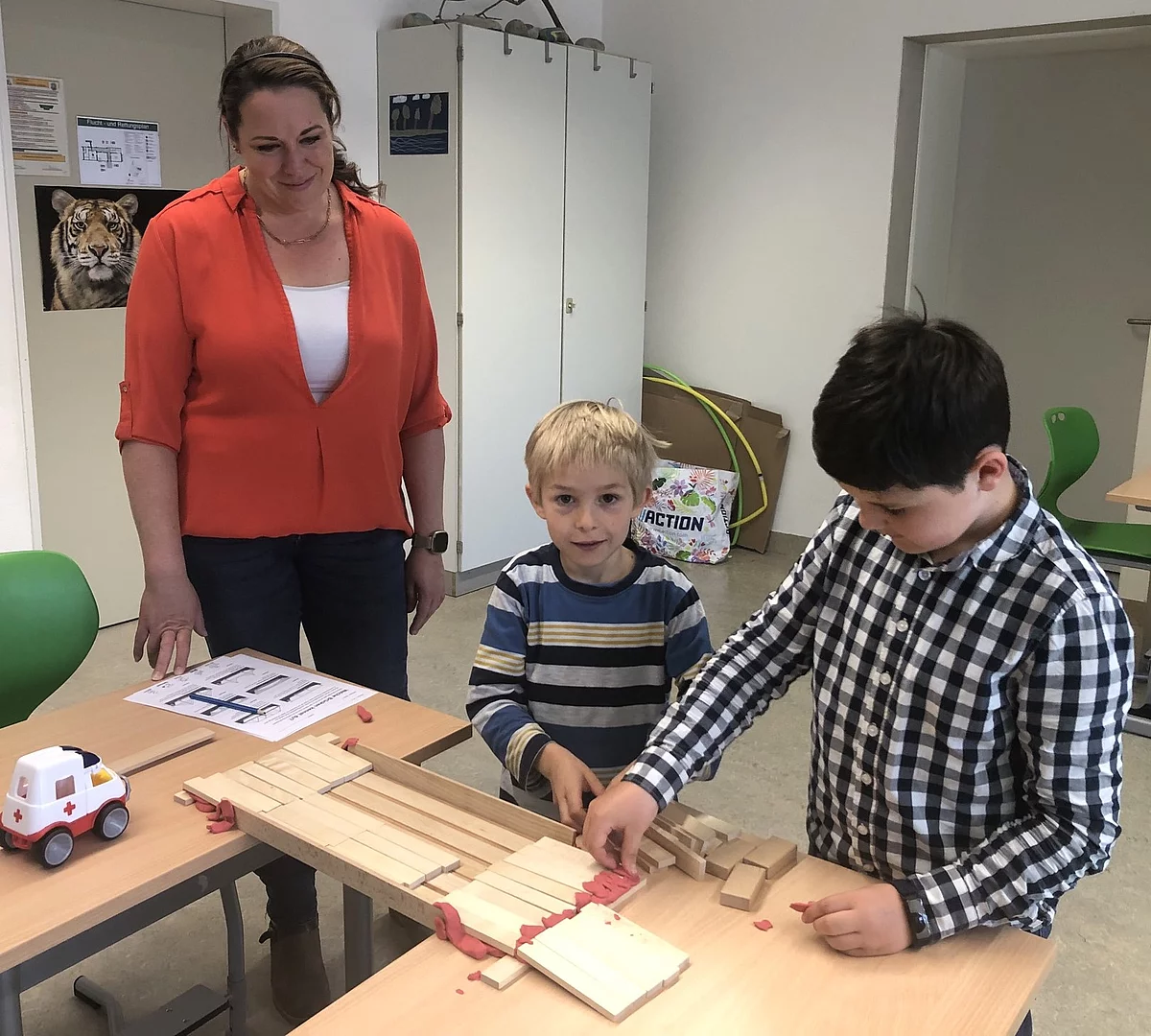 Einsichten in die Konstruktion und den Bau von Brücken erhielten die Kinder beim „Brücken bauen“. Laura Seidel stand eine Brückenbaukiste zur Verfügung. Mit einer Menge spezieller Baumaterialien zu diesem Thema wurde ausprobiert und konstruiert, auf welche Art die verschiedensten Brückenformen realisiert werden können.