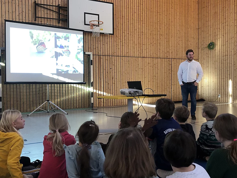Kurz vor den Weihnachtsferien besuchte Florian Holzner die Schulkinder in Julbach. Er nahm sich viel Zeit, um den Kindern anhand einer Präsentation die Arbeit im Naturschutzgebiet in Coban näher zu bringen.