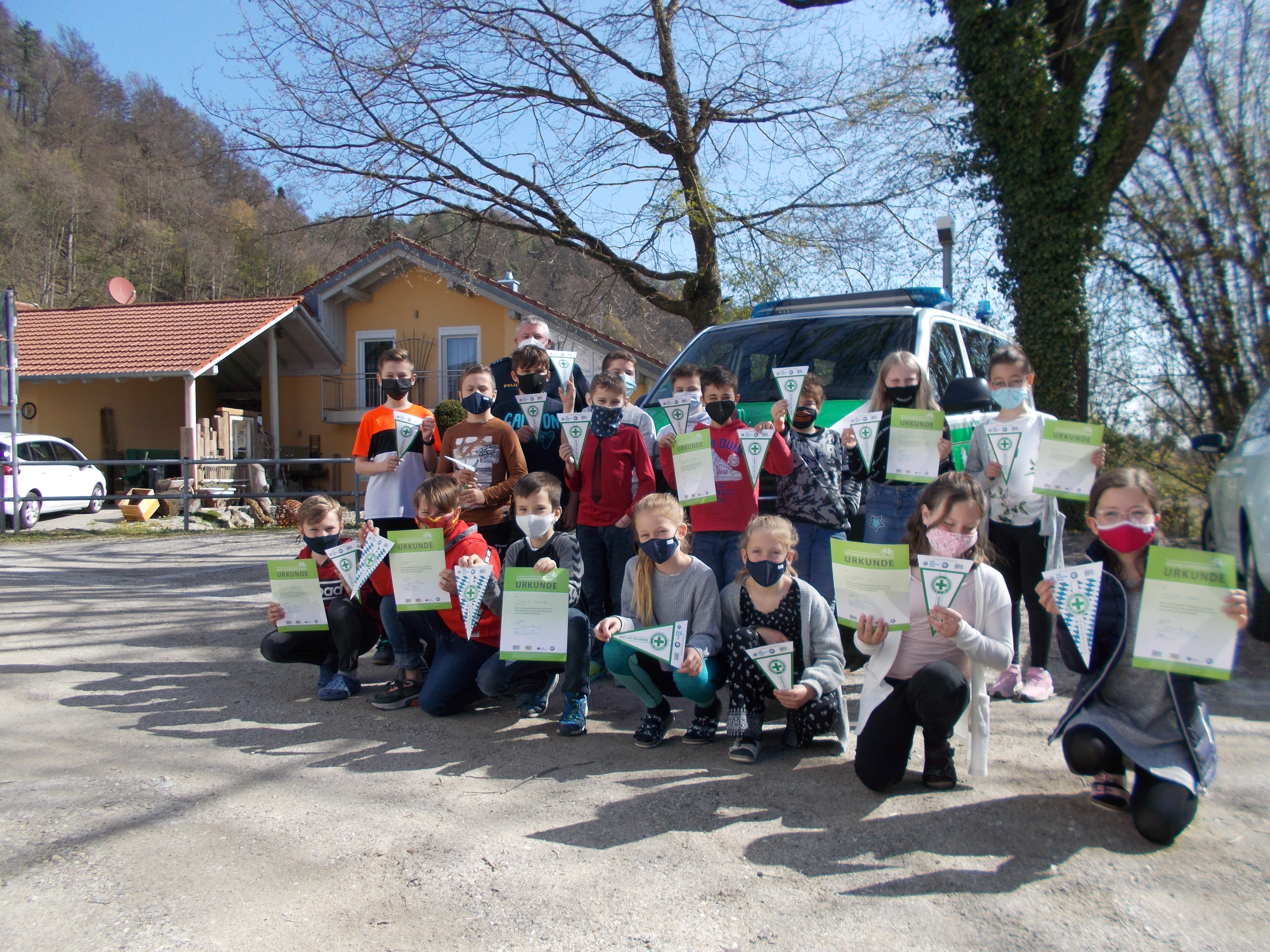 "Alle bestanden!", so lautete das Fazit des letzten Ausbildungstages der Verkehrsschule. Alle Kinder der 4. Klasse, die zur Prüfung angetreten waren, meisterten die Anforderungen, die vorgeschriebenen Strecken möglichst ohne Fehler zu durchfahren. So konnten alle den Fahrradführerschein und den Wimpel für das Fahrrad in Empfang nehmen. In Verbindung mit der theoretischen Prüfung konnten sogar drei Ehrenwimpel für besondere Leistungen ausgehändigt werden. Als geprüfte Radfahrer dürfen die Kinder nun am Straßenverkehr teilnehmen. Dazu wünschen wir stets gute und unfallfreie Fahrt!