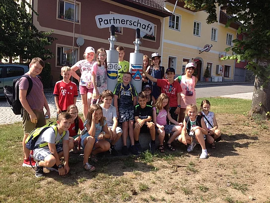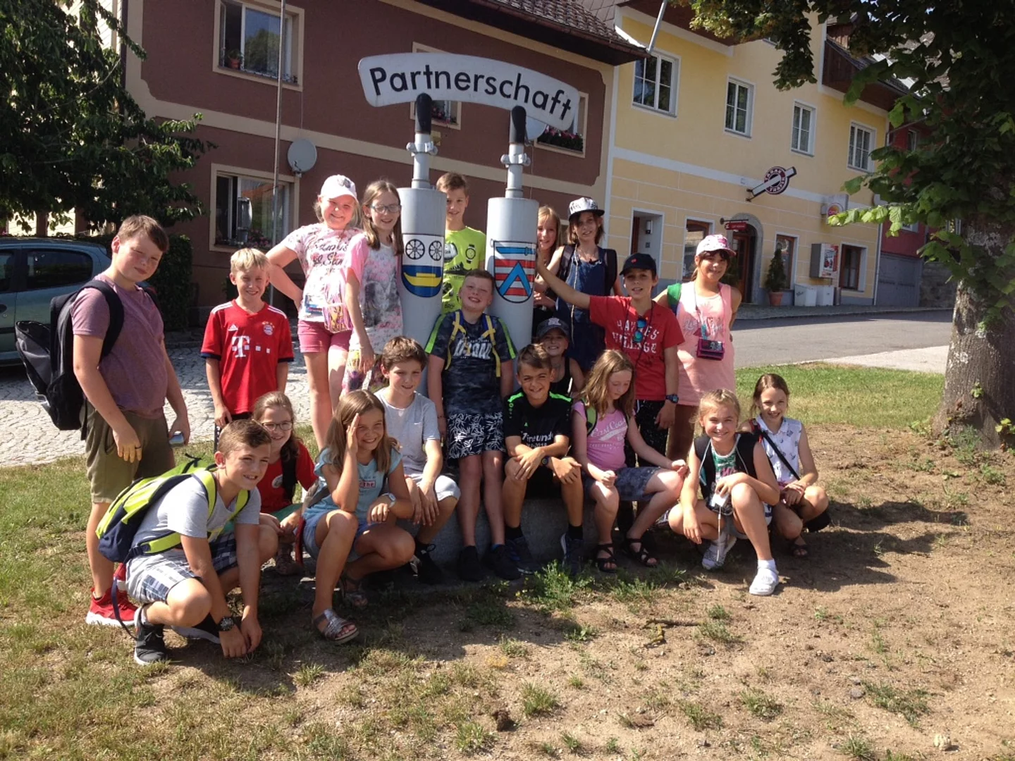 Herrliche Tage in der Partnergemeinde in Österreich und dem Nachbarland Tschechien Die 4. Klasse der Grafen von Schaunberg Schule verbrachte zusammen mit Klassenleiterin Katharina Hornung und Lehrerin Sabine Schmelz ihren Schullandheimaufenthalt im Mühlviertel. Ziel war die Partnergemeinde Julbach in Oberösterreich, als Unterkunft diente die Adalbert Stifter Jugendherberge in Aigen. Neugierig machten sich die Kinder auf die Fahrt, um das andere Julbach kennen zu lernen. Am ersten Tag wurde in der Kreisstadt Rohrbach die „Villa Sinnenreich“ angesteuert. Bei einer Führung erlebten die Kinder erstaunliche Sinnestäuschungen und faszinierende Eindrücke im Bereich der Körperwahrnehmungen. Dann wurde die Gemeinde Julbach besucht. Mit Freude stellte man fest, dass der Ortskern dem eigenen Julbach sehr ähnlich ist. Rathaus, Kirche, Kindertagesstätte und Grundschule bilden einen gemeinsamen Mittelpunkt. Die schöne St. Anna Kirche und das moderne Rathaus beeindruckten die Kinder sehr. Einen schönen Platz zum Verweilen stellte der Annabrunnen mit dem Kunstwerk zum Gedenken an die Partnerschaft dar. Hier wurden natürlich mehrere Erinnerungsfotos geschossen. Auch die Volksschule mit dem dazugehörigen großen Spielplatz fanden die Kinder interessant. Am zweiten Tag besuchte man die Landesgartenausstellung Bio.Garten.Eden beim Stift Schlägl. Die thematisch sehr anspruchsvoll aufbereiteten Themengärten waren für alle sehr interessant und einladend. Das Durchschreiten des „Schöpfungsgartens“ wurde noch intensiver mit den dazugehörigen Texten erlebt, die zum Nachdenken anregten. Sehr beeindruckt waren die Kinder auch von der imposanten Stiftskirche oder einen Hängematte, in der alle Klassenkameraden Platz fanden. Nach dem Mittagessen ging die Fahrt ins Nachbarland Tschechien. Während der Fahrt konnten die Kinder bereits einen Blick auf die Moldau werfen, welcher schon mit Spannung erwartet wurde, denn die Kinder hatten sich doch ausgiebig mit dem Werk „Die Moldau“ von Friedrich Smetana im Musikunterricht beschäftigt. In Horni Plana konnte man einen Blick auf den Standort des Geburtshauses vom Namensgeber der Jugendherberge, Adalbert Stifter, werfen. Die Julbacher Schüler staunten sehr über den wunderbaren Badestrand am Moldaustausee. Mit Begeisterung wurde hier ein Badestopp eingelegt. Als Höhepunkt durften die Kinder noch mit der Fähre den Moldaustausee bis an die österreichische Grenze überqueren. Abends stand noch eine Nachtwanderung im Wald auf dem Programm, bei der einige Aufgaben zu bestreiten waren, ehe man die Früchte des Wunderbaumes in Empfang nehmen durfte. Am letzten Tag der Reise machte man Halt im „Haus am Strom“ in Jochenstein. Dort startete man in zwei Gruppen zur Hausralley. Sehr motiviert nutzten die Kinder alle Informationsquellen, Schaubilder und elektronischen Animationen zum Thema „Wasser“, „Stromgewinnung“ und dem Naturraum Donau. Hier gab es viel Interessantes zu entdecken, was genau zum Bildungskonzept der Umweltschule passt. Nach einem Picknick im Grünen wurde die Heimreise angetreten mit vielen neuen Eindrücken und Erlebnissen im Gepäck