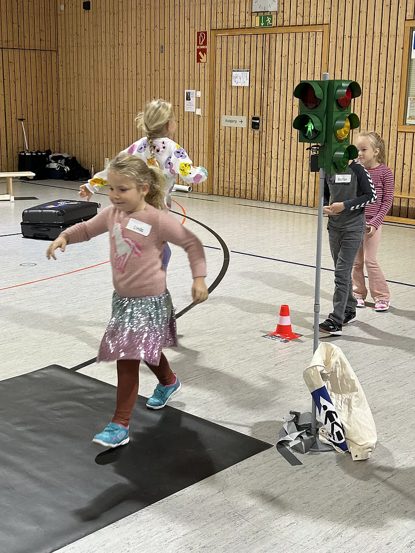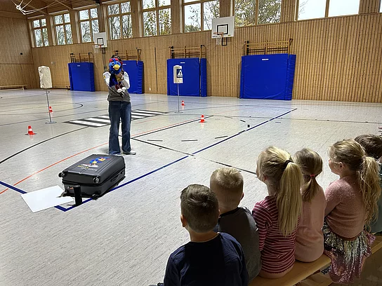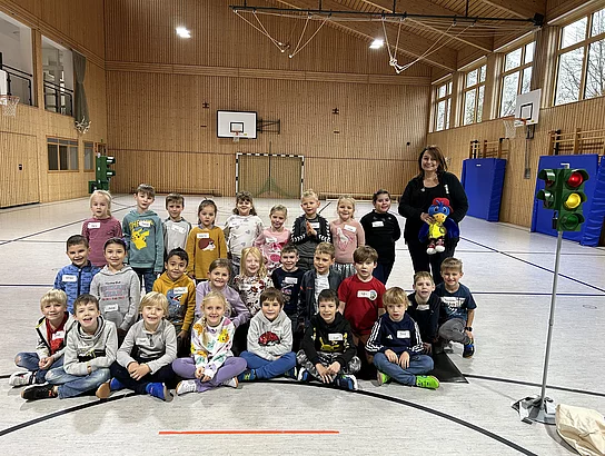 „Aufgepasst mit Adacus“ hieß es in diesen Tagen an der Grundschule Julbach. Die Schüler der ersten Klasse bekamen Besuch von Frau Eder und dem Raben Adacus. Zusammen übten sie das sichere Überqueren der Straße. In der Turnhalle wurden Zebrastreifen und Ampeln aufgebaut. In Gruppen eingeteilt spielten die Kinder entweder als Fußgänger oder Autofahrer die unterschiedlichen Verkehrssituationen nach. Mit einem gemeinsamen Lied wurde die äußerst lehrreiche Übung beendet.