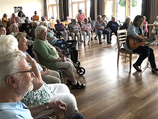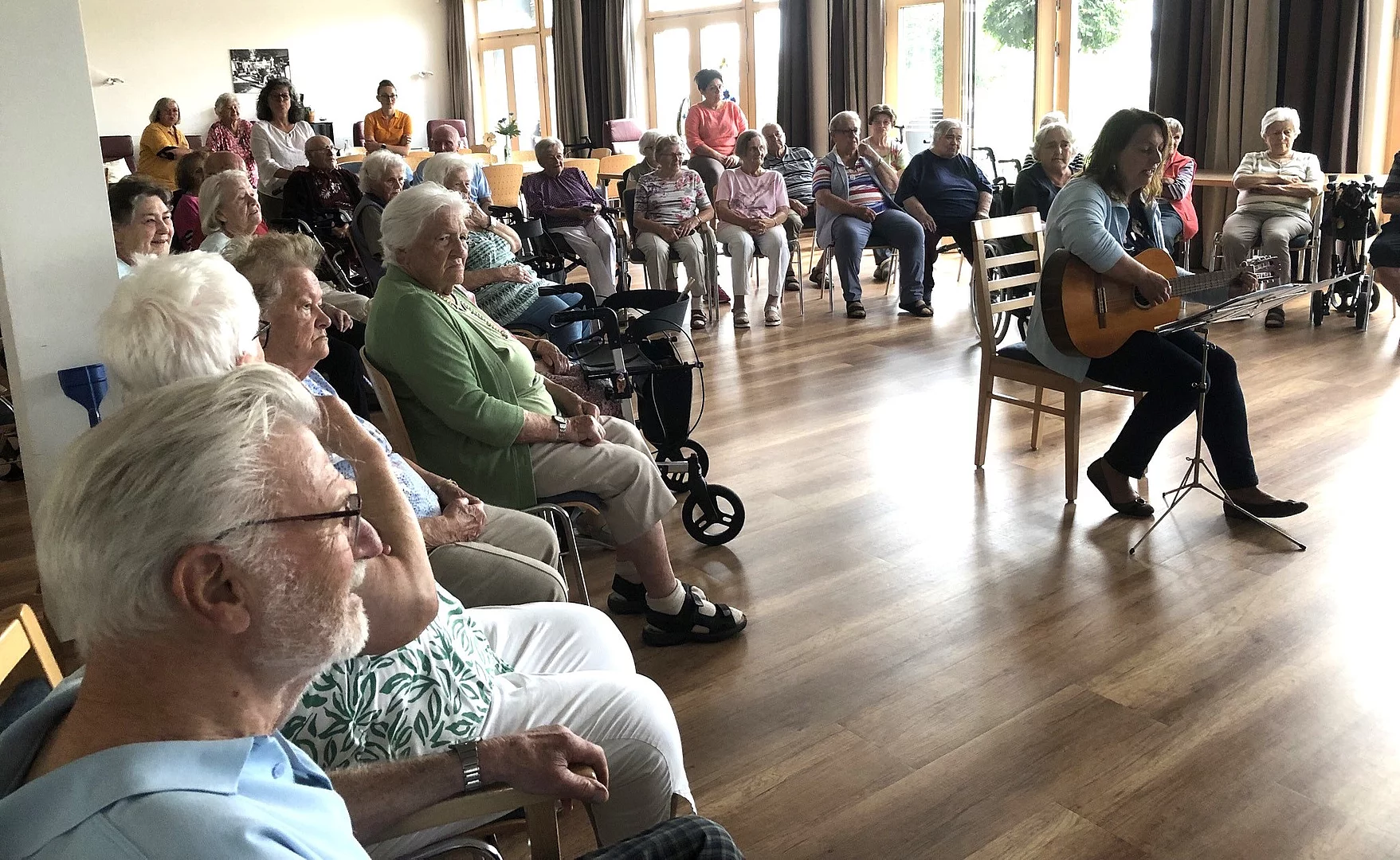 Die Kinder der Grundschule setzten für dieses Schuljahr mit dem kleinen Sommerkonzert einen Schlusspunkt im Reigen ihrer Konzerte und Darbietungen. Bereits zum 6. Mal durften die Kinder die Bewohner im Seniorenheim besuchen und die einstudierten Lieder zum Besten geben. Die Gesamtleitung lag wiederum bei Petra Stiller. Diesmal umfasste das Programm Frühlings- und Sommerlieder sowie ein Stück der Flötengruppe, die die Zuhörer erfreuten. Beim letzten Lied "Ich schenk dir einen Regenbogen" erhielten jede Seniorin und jeder Senior passend zum Lied noch ein kleines Andenken. Nach dem ca. halbstündigen Konzert und einer süßen Erfrischung machten sich die Kinder wieder auf den Rückweg mit vielen Lobesworten aus der Zuhörerschar.