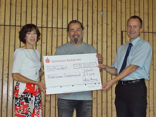 Der Erfolg bei der Vernissage war großartig. Es wurden die Klassenarbeiten zu hohen Preisen versteigert und viele Gäste erwarben durch Spenden eine große Anzahl von Schülerarbeiten. Nun konnten an Herrn Alfons Hasenknopf und an Herrn Florian Holzner jeweils 500€ Spendengeld übergeben werden. Beide freuten sich sehr über diese großzügige Unterstützung und sprachen in ihren Dankesworten große Anerkennung an die Schulfamilie aus.
