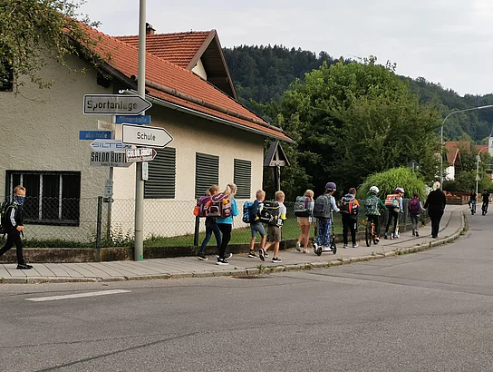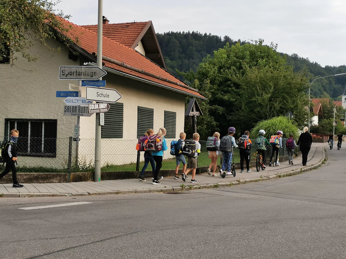 Nach der Verzögerung durch die Schulschließungen konnte nun doch noch die Erprobungsphase des "Fußbusses" gestartet werden. An den mit schönen Schildern ausgewiesenen "Fuhaltestellen" im Ort treffen sich am Morgen Kinder der umliegenden Straßen und gehen gemeinsam in Begleitung eines Erwachsenen zur Schule. Zur Zeit sind im Ort drei Routen ausgewiesen. Ungefähr ein Drittel aller Schülerinnen und Schüler wollen diesen umweltschonenden Schulweg ausprobieren. Auf diese Art und Weise können sie sich schon vor Schulbeginn an der frischen Luft bewegen und ihre Schulwegsicherheit trainieren. Großen Anklang fand die Aktion, die maßgeblich von Herrn Christian Danzer organisiert wurde, auch bei der Polizei in Simbach und bei der Gemeinde Julbach, die bei der Umsetzung des Projekte die Schule unterstützt haben. Im kommenden Schuljahr soll die Schulwegsaktion fortgeführt werden und alle hoffen, dass sich nicht nur wegen der Umwelt viele Kinder anschließen werden.