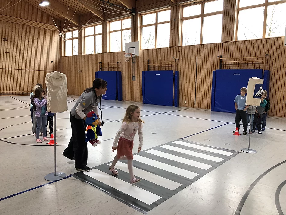 Zum Erwerb des Radlführerscheins gehören auch die Grundlagen in der ersten Klasse. Frau Conny Eder, Pädagogin im Auftrag des ADAC, hielt mit den Kindern der ersten Klasse ein Fußgängertraining zusammen mit dem Raben ADACUS ab. Das richtige Verhalten am Fußgängerüberweg war das Thema sowie das sichere Überqueren der Straße. Alle Kinder durften Fußgänger oder Autofahrer spielen, um sich so in die Lage des anderen versetzen zu können. Auch eine richtige Ampel kam zum Einsatz. Dass man bei Grün nicht einfach losrennen darf erkannten die Kinder an den “Autofahrern”. Umsichtiges Verhalten ist sehr wichtig, das haben die Kinder gelernt und erhielten von ADACUS eine Urkunde und einen passenden Aufkleber.
