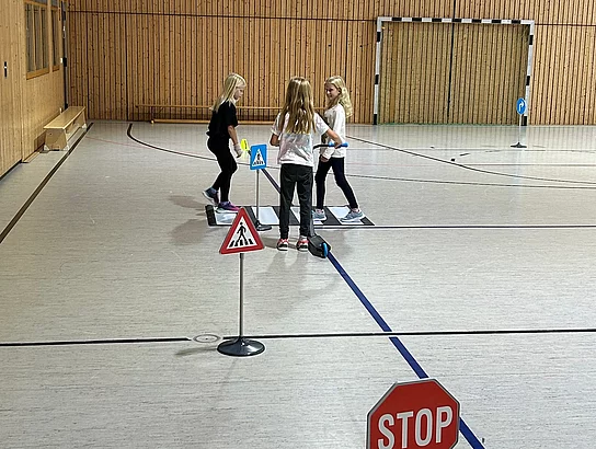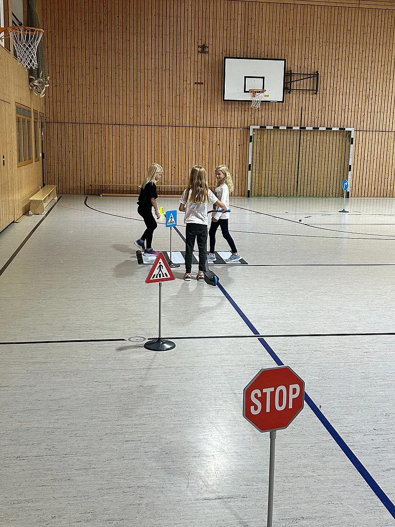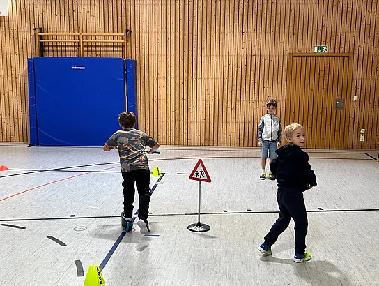 Zudem wandten sie ihr Wissen über Verkehrsschilder an und verhielten sich an Stoppschildern, Richtungspfeilen,… mit dem Roller genau richtig. Dies war eine passende Vorübung für das Roller- und Radfahren im Realverkehr und hat den Kindern viel Spaß gemacht.