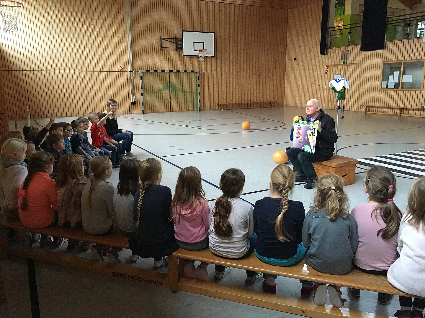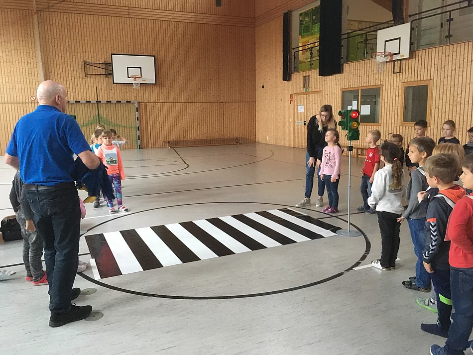 Auch dieses Jahr besuchte Herr Max Rutzinger vom ADAC wieder die erste Klasse und führte mit ihnen ein Verkehrssicherheitstraining durch. Zuerst wurde besprochen, wie man sich auf der Straße als Fußgänger richtig verhält und anschließend praktisch geübt. Die Kinder mussten einen Zebrastreifen richtig überqueren und lernten, was man bei einer Ampel alles beachten muss.