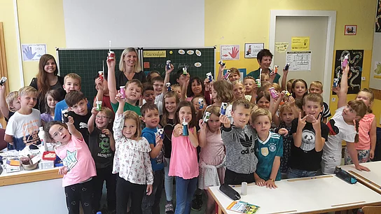 Heute war es endlich soweit, unsere zukünftigen Abc-Schützen lernten ihre Schulpaten aus der zweiten Jahrgangsstufe kennen. Zunächst wurden in der Turnhalle zum Märchen der Dampflok Emma viele Bewegungsspiele durchgeführt. Viele kleine Dampfloks, flotte Autos, Pinguine, Eisbären und sogar Indianer flitzen durch die Halle. Voller Stolz stellten die Zweitklässler nach der gemeinsamen Pause, ihre Klassenlektüre vor. "Das Buch "Ritter Robert und seine Abenteuer" hat 63 Seiten, aber das macht uns jetzt nichts mehr, wir können alle gut lesen." Nachdem der Inhalt beschrieben und vorgespielt worden war, durfte jeder Pate seinem Schützling ein Abenteuer aus dem Buch vorlesen. Im Anschluss bastelten die Kindergartenkinder, eifrig unterstützt von den Schulkindern, einen kleinen Ritter aus einer Toilettenpapierrolle. Im abschließenden Sitzkreis stellten alle ihr Wissen über Ritter unter Beweis. Als Dankeschön für die Einladung überreichte Erzieherin Claudia Ebertseder ein Blumenbild, das die Vorschulkinder selbst aus Fotos und Mandalas gestaltet hatten. Auch wir möchten uns beim Dreier-Team aus dem Kindergarten nochmal herzlich für die Unterstützung während des Bastelns bedanken. Wir freuen uns auf unsere zukünftigen Schulkinder!