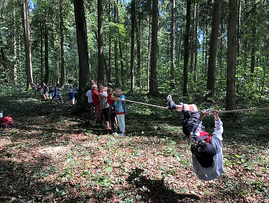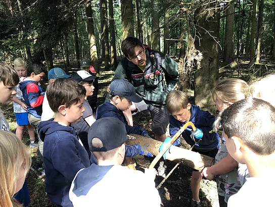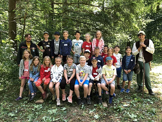 Nach zwei Jahren Coronapause konnten die 3. Klassen heuer wieder an den Waldjugendspielen in Eggenfelden teilnehmen. Waldpate Tom führte uns ca. drei Stunden durch den Wald. Auf unserem Weg begegneten wir Robin Hood. Für ihn mussten wir bestimmte Aufgaben lösen, um Goldnuggets zu sammeln. So wartete ein gefährlicher Steg, ein Dornengestrüpp, ein Sumpf, das Brennholzschneiden, das Pflanzen einer Buche auf uns, und der Sheriff hatte knifflige Rateaufgaben für uns bereit. Zum Glück konnten nach dem Leitspruch:“Einer für alle, alle für einen!“ alle Aufgaben prima gelöst werden und die Höchstzahl von 70 Goldnuggets waren am Ende im Säckchen. Nach dem Gruppenfoto erhielt jeder eine Waldmedaille und ein Käppi.