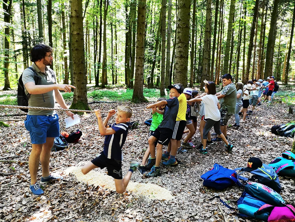 Mit Robin Hood den Wald erkunden Die dritte Klasse durfte mit Förster Sebastian den Bürgerwald in Eggenfelden erleben und dabei spielerisch Wissen und Erfahrungen sammeln. Gemeinsam mit Robin Hood galt es zudem verschiedene Aufgaben zu bestehen und so den bösen Sheriff zu besiegen. Dabei mussten die Schülerinnen und Schüler nicht nur Geschicklichkeit, Mut und Teamgeist unter Beweis stellen, sondern auch ihr Wissen über den Lebensraum mit all seinen Pflanzen und Tieren einbringen. Es wurde zum Beispiel: Holz für Marian gesägt, eine Brücke durch Wissen überwunden, aus dem undurchdringlichen Moor ein Schatz geborgen, eine Tanne gepflanzt und sich mit Fingerspitzengefühl vor dem Sheriff versteckt. Die Herausforderungen bereiteten den Kindern sichtlich Freude und am Ende erhielten sie vom Förster ein großes Lob: "Ihr seid die beste Klasse mit der ich jemals unterwegs war!" Denn die Schülerinnen und Schüler schafften es tatsächlich gemeinsam über 70 Goldnuggets zu sammeln und so hatten sie sich am Ende Robins Schatz mehr als verdient.