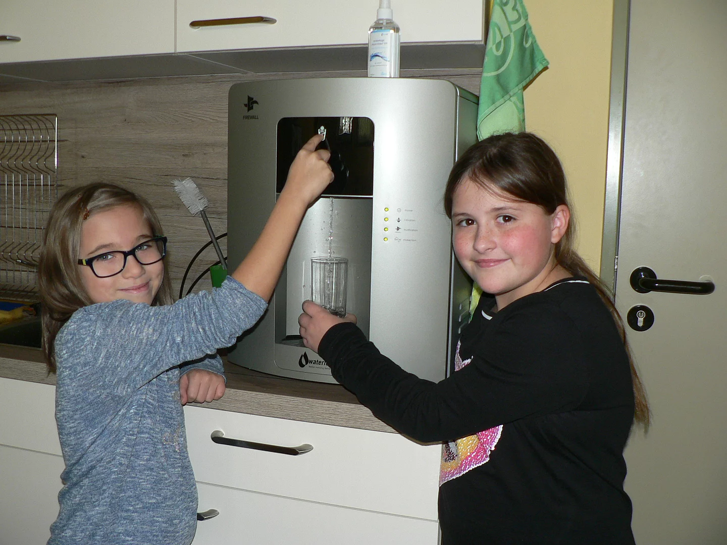 Große Freude in der Ganztagesschule Die AOK Nürnberg förderte anlässlich der "Woche der Gesundheit und Nachhaltigkeit", die alljährlich im Oktober vom Kultusministerium ausgerufen wird, die Schulen, die dem Schulentwicklungsprogramm "gute gesunde Schule" angehören. Dabei konnte ein einmalig gezahlter Betrag geltend gemacht werden, der Anschaffungen oder Projekte zur Gesundheit und Nachhaltigkeit unterstützt. Um den Kindern der Ganztagesschule gesunde Durstlöscher anzubieten und Flaschenverpackungen zu vermeiden, wurde von der Schulleitung der Antrag auf Zahlung eines Wasserspenders gestellt. Dieser wurde genehmigt und so freuen sich Kinder und Team der OGTS über jederzeit zur Verfügung stehendes frisch aufbereitetes Trinkwasser. Katharina Hornung, Rin