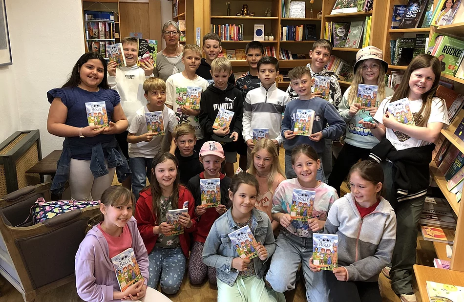 Rund 3.000 Buchhandlungen in ganz Deutschland verschenken dazu je ein Exemplar an Viert- und Fünftklässler*innen. Zur Feier dieses Tages sollen die Kinder eine Buchhandlung besuchen. Am Freitag, 2.Mai fuhren die Viertklässler aus Julbach nach Simbach zur Buchhandlung Pfeiler. Dort wurden sie von Frau Claudia Klein empfangen, die ihnen zunächst erklärte, wo der Welttag des Buches seinen Ursprung hat. Anschließend zeigte sie einige Besonderheiten wie eine von Hundertwasser gestaltete Bibel oder ein wertvolles Faksimile. Dann wurden die Kinder aufgefordert, an verschiedenen Stationen Rätsel zu lösen. Nach dieser erfolgreichen Schnitzeljagd und einer kurzen Einführung in den Comicroman durften sie ihre Bücher in Empfang zu nehmen.