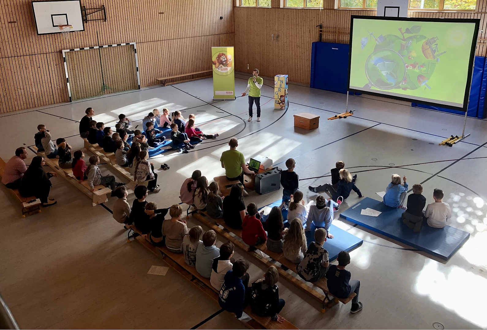 Draußen ist es kalt, drinnen wohlig warm. Doch woher kommen Strom und Gas, und wie können wir sinnvoll damit umgehen? Die interaktive Veranstaltung „Energie erleben“ der Energie Südbayern machte wieder Halt an Grundschulen in Bayern. Gemeinsam mit dem Moderatorenteam Achim Büchner und Jürgen Schardt vermittelt Energie Südbayern Schülerinnen und Schülern das Thema Energie und Energiesparen. Beim ESB Lerntheater stehen Interaktivität, handlungsorientiertes Lernen und Spaß an der Bewegung im Mittelpunkt. Gemeinsam mit E-Leo, dem Energiesparlöwen und Maskottchen der ESB, wird beispielsweise der Stromverbrauch bei Leuchtmitteln und Elektrogeräten unter die Lupe genommen. So können auch Kinder bereits im Haushalt und im Alltag mithelfen, Energie zu sparen. Unterstützt werden sie mit dem Energie Check Heft für zu Hause. Beim erneuten Gastspiel an der Grafen von Schaunberg Schule war auch Bürgermeister Markus Schusterbauer zu Gast und machte sich ein Bild vom Lerntheater des örtlichen Energielieferanten.