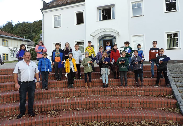 Die 4. Klasse befasste sich im HSU-Unterricht mit dem Thema "Gemeinde". Zum Abschluss durften die Kinder Herrn Bürgermeister Schusterbauer im Rathaus besuchen. Viele Fragen hatten sich die Kinder notiert, die er geduldig beantwortete. Alle freuten sich, dass sie im großen Sitzungssaal Platz nehmen durften. Große Anerkennung fanden die Bilder mit den Entwürfen des neuen Rathauses, die die Kinder betrachten konnten. Auf die Frage, warum ein neues Rathaus gebaut werden muss, machte Herr…