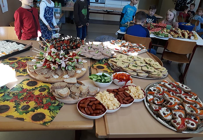 Nachdem im Herbst für alle Kinder das gesunde Frühstück im Mittelpunkt der Ernährungserziehung stand, sollte nun eine Zwischenbilanz gezogen werden: Wie hat sich mein Frühstücksverhalten verändert? Esse ich nun andere Dinge, die ich vorher nicht kannte? Achte ich auf gesunde Lebensmittel? Da die zweite Klasse im HSU-Unterricht aktuell das Thema gesunde Ernährung mit Obst und Gemüse auf dem Stundenplan stehen hat, bereiteten einige fleißige Muttis von Kindern der 2. Klasse ein ausgezeichnetes…