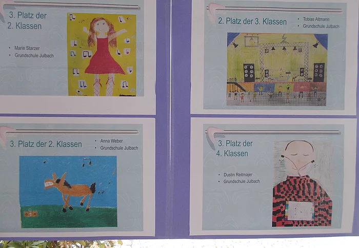 Beim diesjährigen Malwettbewerb der VR-Bank mit dem Thema "Musik bewegt" wurden viele Bilder von Julbacher Grundschülern mit einem Preis ausgezeichnet. In der 1. Klasse erreichte Amilia Förster den 4. Platz und Lena Vetter den 6. Platz. Hanna Rohrer hatte Glück beim Quiz. In der 2. Klasse freuten sich Marie Starzer und Anna Weber punktgleich über den 3. Platz, Samuel Bader über den 4. Platz und Sarah Danzer über den 5. Platz. In der 3. Klasse erzielte Tobias Altmann den 2. Platz, Simon…