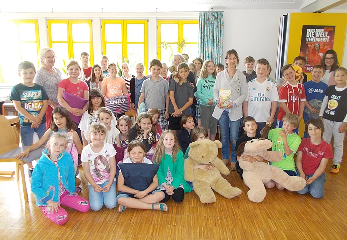 Wie jedes Jahr zum Welttag des Buches luden Frau Köppl und Frau Holzner von der Gemeindebücherei die Schulkinder zu sich ein. Es war ihnen gelungen, die Schauspielerin Frau Christine Reitmeier für eine Vorlesestunde zu gewinnen. Mit Kissen und Kuscheltieren bewaffnet, machten sich die Kinder nach der Pause auf den Weg zur Bücherei. Zunächst durften die 1. und 2. Klasse kommen. Anschließend wurden die 3. und 4. Klasse eingeladen, den Geschichten vom "Sonnenhof" zu lauschen. Spannend und etwas…