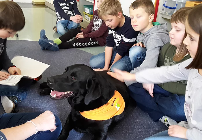 Zum Abschluss des Themas "Haustiere" im Heimat- und Sachunterricht erhielt die zweite Klasse tierischen Besuch. Frau Julia Bucher, Lehrerin an der Grundschule Haiming, kam mit ihrem Schulhund Balu in den Unterricht. Die Kinder warteten gespannt, manche auch sehr respektvoll, auf den schwarzen Labrador. Zunächst erklärte Frau Bucher den Zweitklässlern, wie sie sich in Gegenwart des Schulhundes verhalten sollten. Hunde hören siebenmal besser als Menschen, deshalb war Lärm nicht angebracht. Einen…
