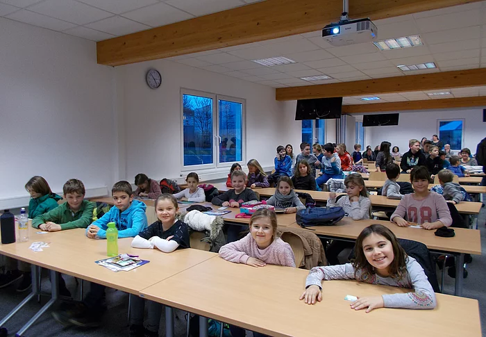 Da das Thema "Nachhaltigkeit und Umweltschutz" im Rahmen der Umweltschule auch in diesem Jahr im Unterricht Thema sein wird, machte sich die 3. Klasse und ein Teil der 4. Klasse auf zur Kinderuni der Technischen Hochschule Deggendorf in Pfarrkirchen, um an der Vorlesung "Nachhaltigkeit- Umweltschutz geht uns alle an" teilzunehmen. Klassenleitung und Eltern bildeten Fahrgemeinschaften, um die Kinder auf den Campus zu bringen. Sehr pünktlich sein lohnte sich, da man die ersten Reihen im Hörsaal…
