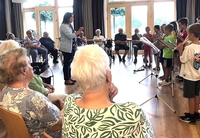 Die Kinder der Grundschule setzten für dieses Schuljahr mit dem kleinen Sommerkonzert einen Schlusspunkt im Reigen ihrer Konzerte und Darbietungen. Bereits zum 6. Mal durften die Kinder die Bewohner im Seniorenheim besuchen und die einstudierten Lieder zum Besten geben. Die Gesamtleitung lag wiederum bei Petra Stiller. Diesmal umfasste das Programm Frühlings- und Sommerlieder sowie ein Stück der Flötengruppe, die die Zuhörer erfreuten. Beim letzten Lied "Ich schenk dir einen Regenbogen"…